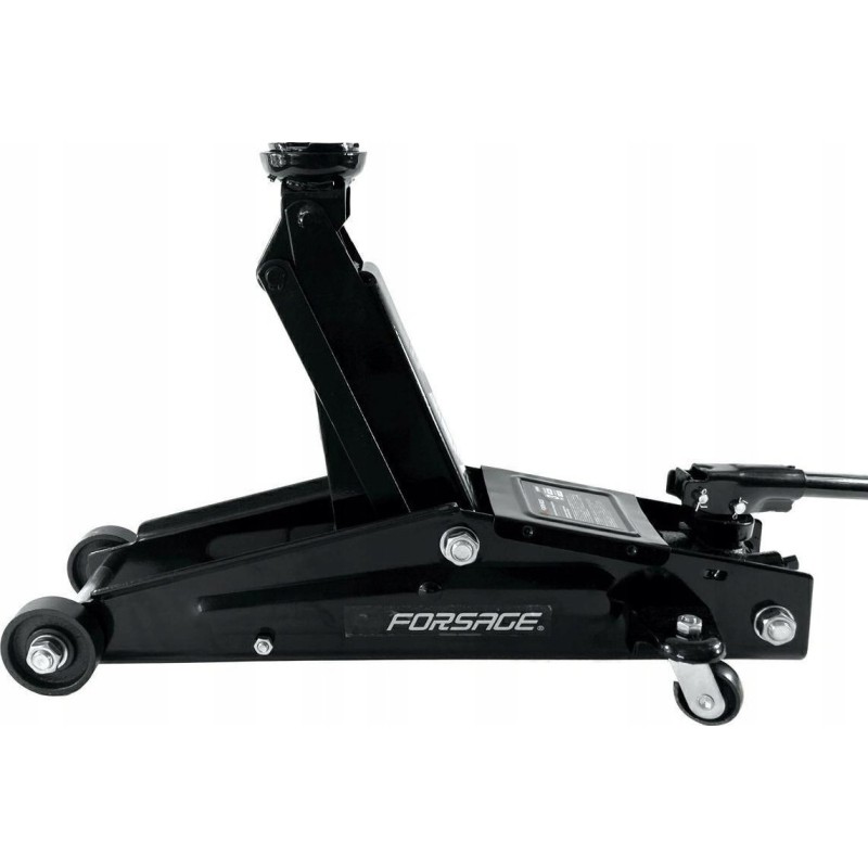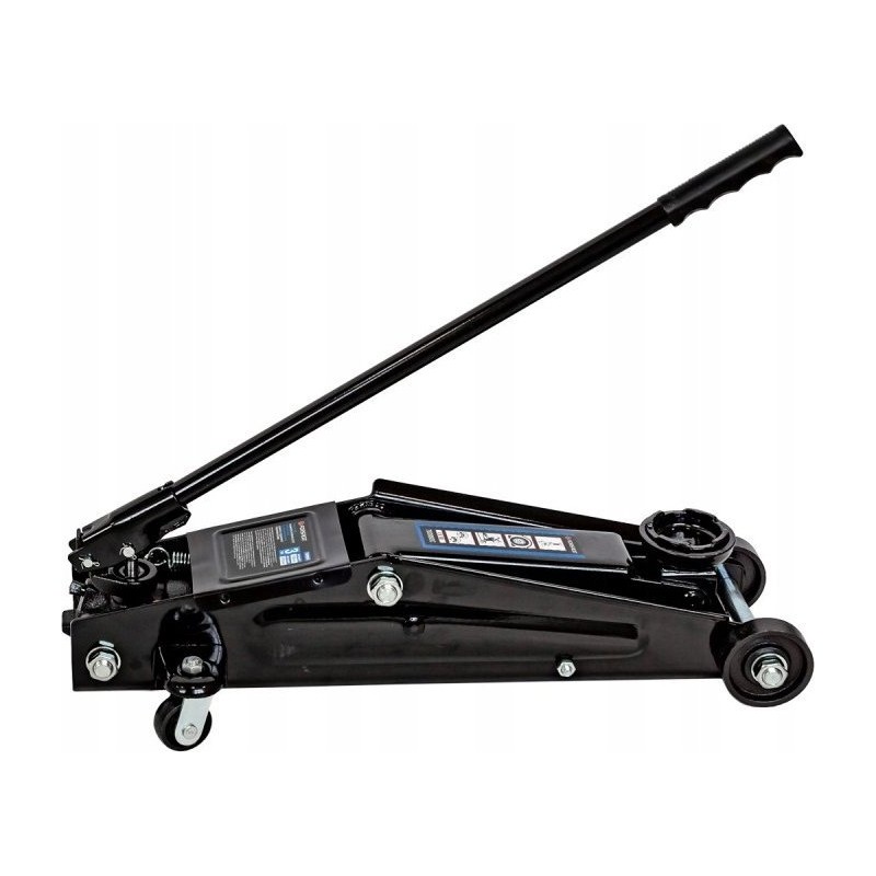 Der Wagenheber ist mit robusten Metallrädern ausgestattet, die auch bei langem Einsatz in der Werkstatt nicht unter dem Gewicht des Fahrzeugs nachgeben.