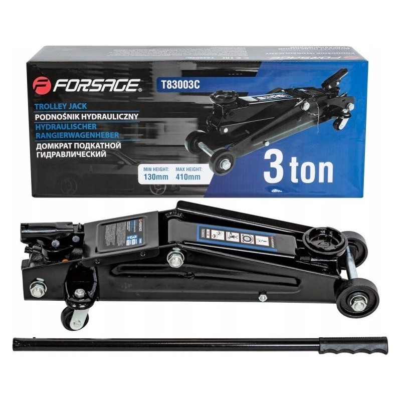 Dank seiner Abmessungen lässt sich dieser Wagenheber leicht unter dem Fahrgestell des Fahrzeugs positionieren.