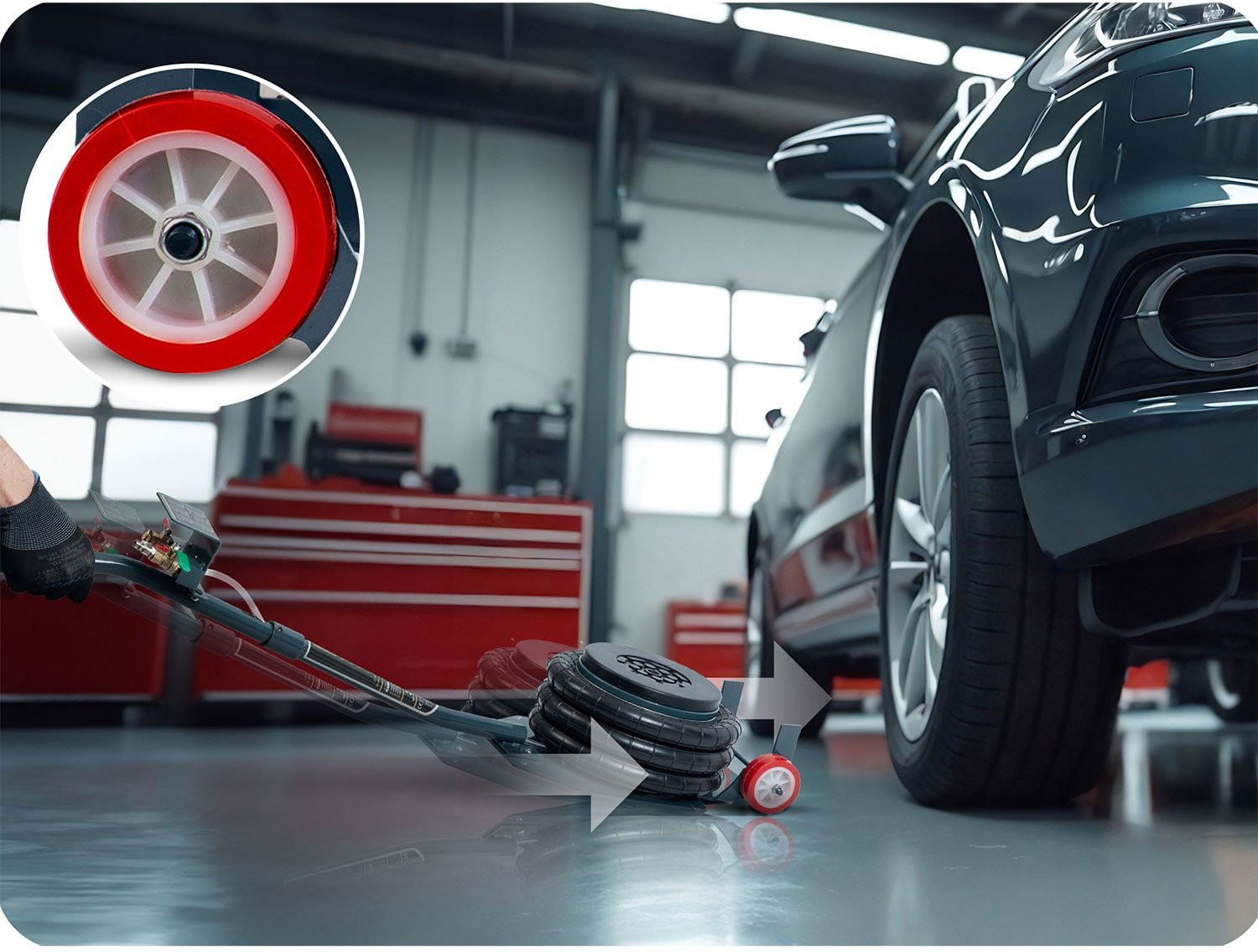 • Betriebsdruck: 6–12 bar – schnelles und effizientes Anheben.