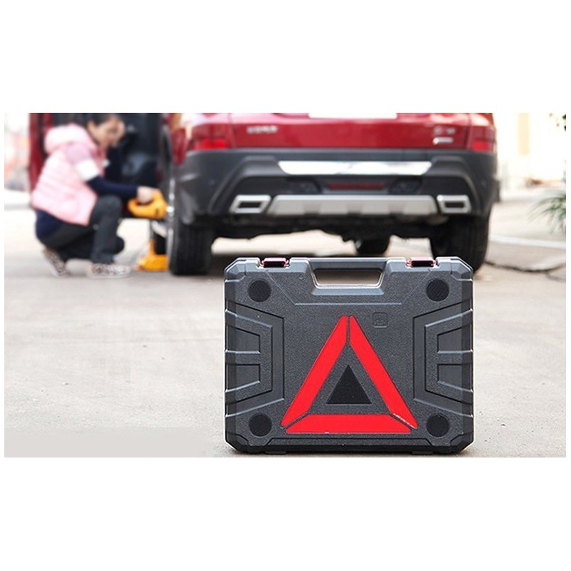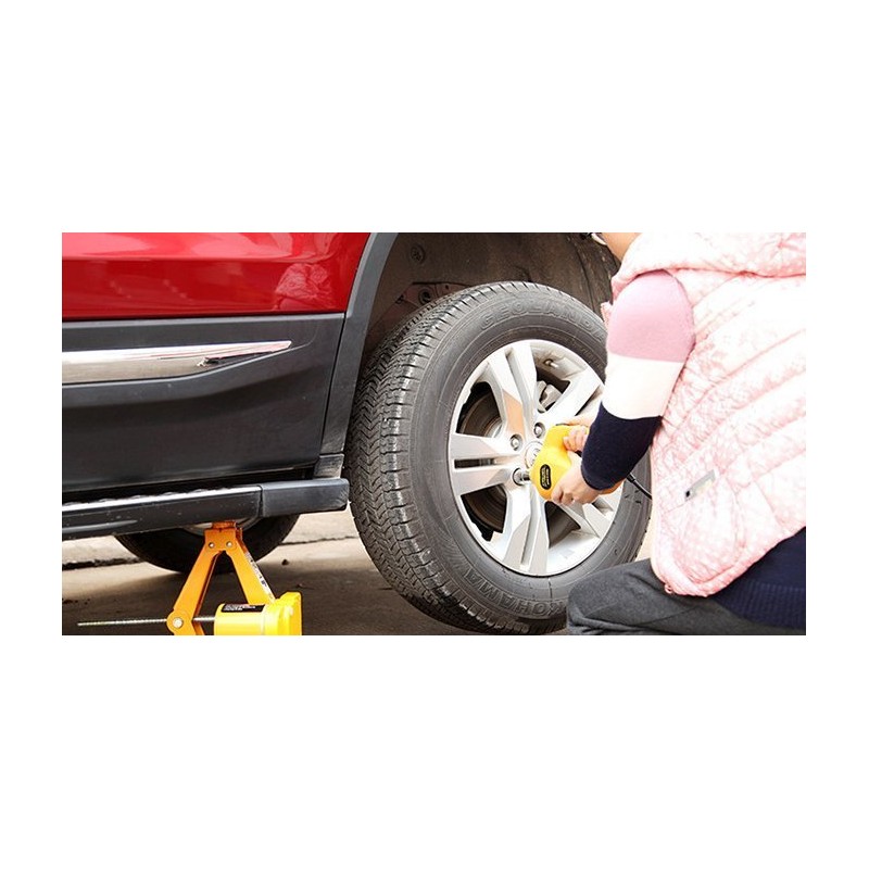 Dieses Set, das einen Wagenheber sowie einen automatischen Schraubenschlüssel enthält, schützt Sie vor verschiedenen Pannen.