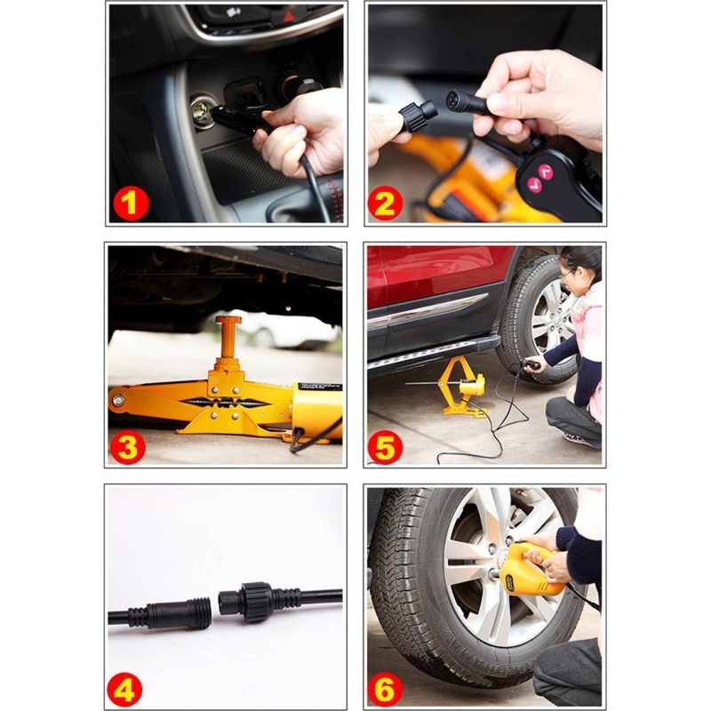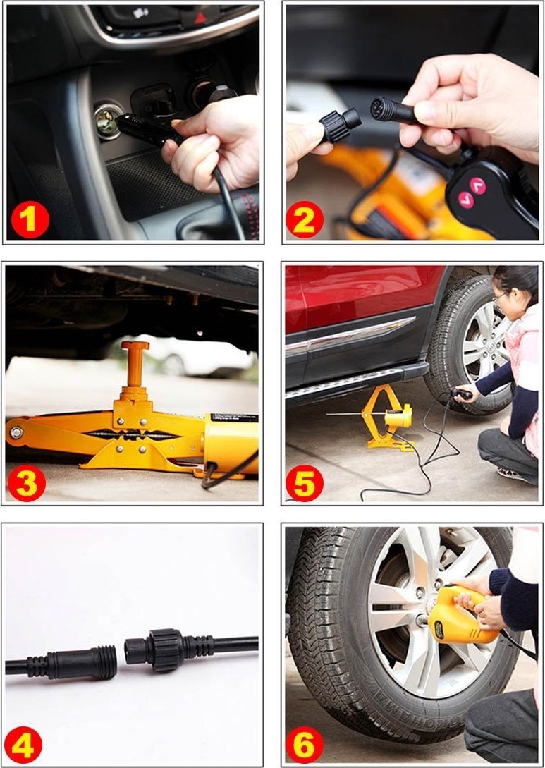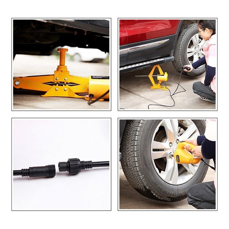 Erleichtere dir den Reifenwechsel mit einem automatischen 12-V-Wagenheber. Dieses moderne Gerät hilft dir dabei, das Auto mühelos auf die richtige Höhe anzuheben.