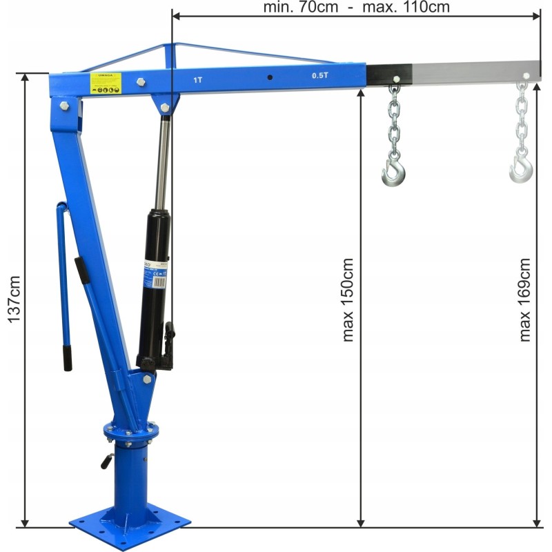 • Tragkraft je nach Ausladung des Arms: 500 / 1000 kg