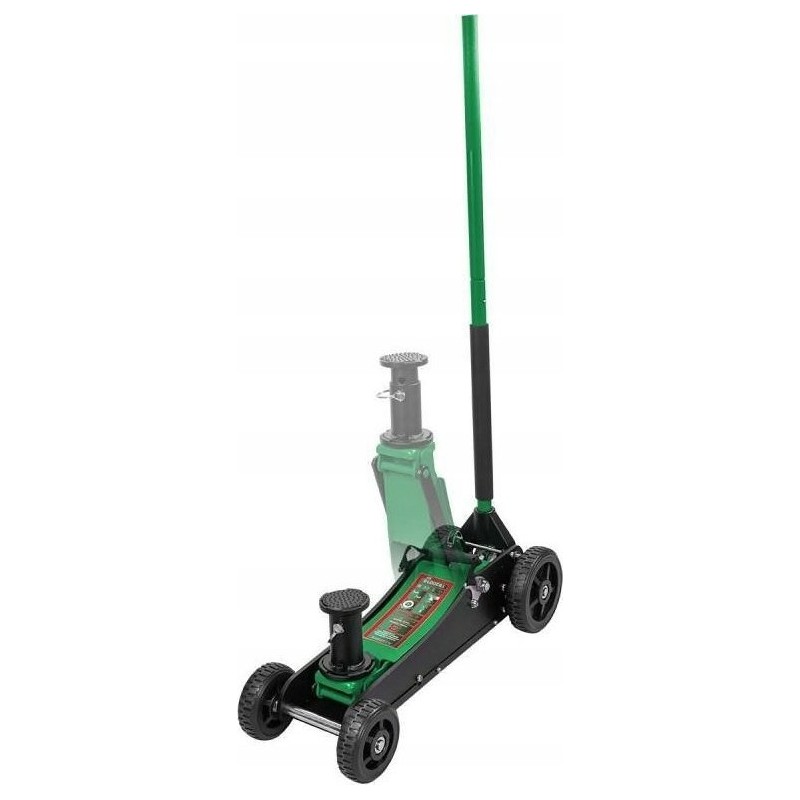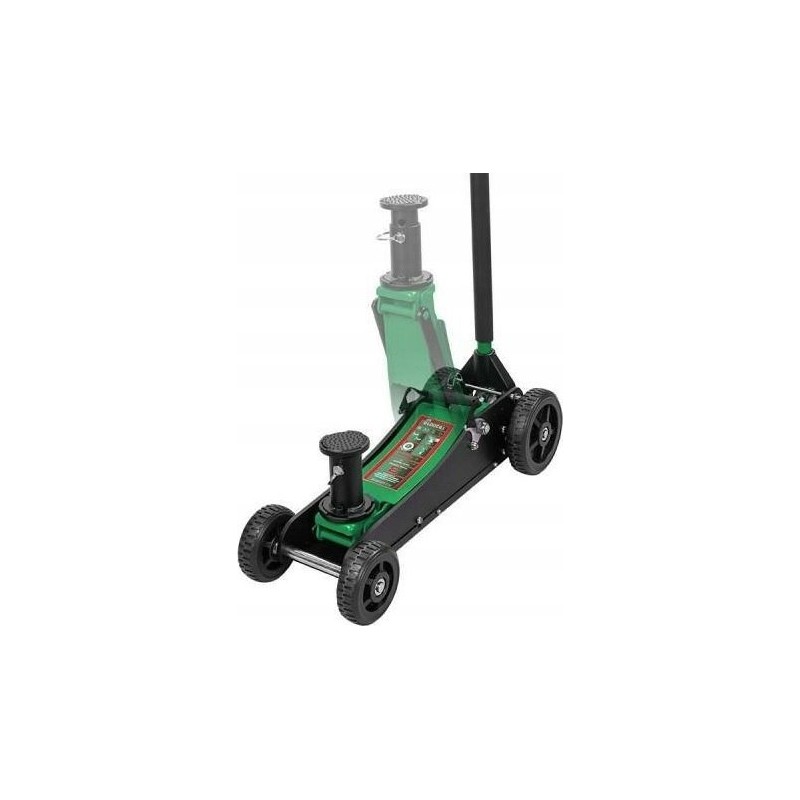 Dank der großen, schlauchlosen Räder lässt sich der Wagenheber auf jedem Untergrund leicht manövrieren, sowohl auf der Straße als auch im Gelände, und die lange Stahlplatte schützt vor Beschädigungen oder dem Einsinken im Sand.