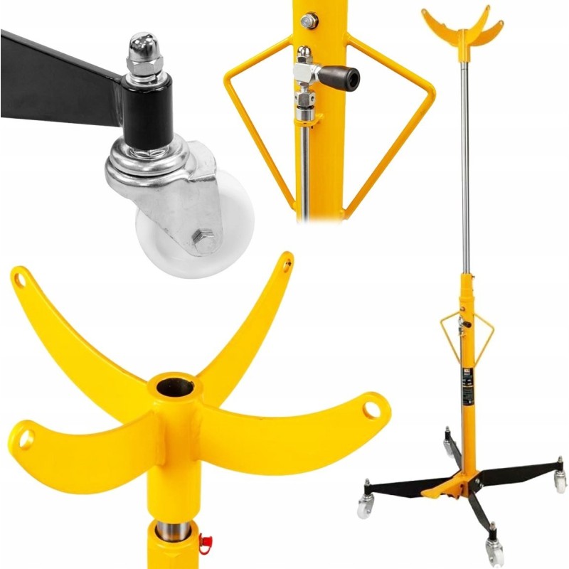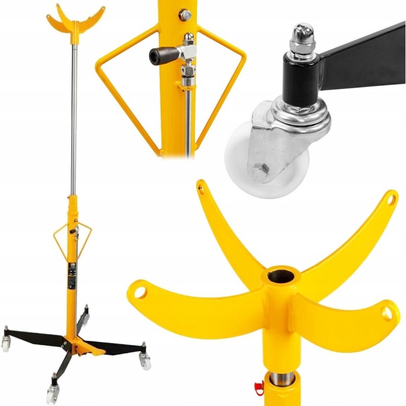 Der Heber ist mit vier selbstausrichtenden Rädern ausgestattet, die ein einfaches und stabiles Bewegen ermöglichen. Das Gerät wird in der Werkstatt, in der Garage oder bei anderen Arbeiten eingesetzt, die eine hohe Tragkraft erfordern.