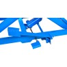 Professionelle hydraulische Motorrad-Hebebühne. Die maximale Tragkraft beträgt 450 kg. Die maximale Hubhöhe beträgt 825 mm. Zusätzlich verfügt der Heber über eine 2-stufige Verriegelung, die ein versehentliches Zusammenklappen verhindert. Die abnehmbare hintere Auffahrrampe verlängert die Arbeitsfläche auf 204 cm (mit geneigtem Teil auf 248 cm). Die rutschfeste Struktur der Arbeitsfläche und die Klemmvorrichtung für das Vorderrad stabilisieren die Position des Motorrads auf der Plattform effektiv. Öffnungen an den Seiten der Plattform ermöglichen eine zusätzliche Sicherung des Motorrads mit Seilen oder Gurten.
