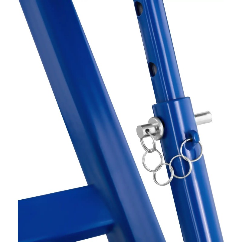 mobile Fahrzeugheber der Marke MSW ist die ideale Hilfe in der Werkstatt und im Kfz-Service zum schnellen Anheben von Fahrzeugen. Der Heber wird unter das Fahrzeug gerollt und anschließend mithilfe einer mechanischen Halterung angehoben, ohne dass Druckluft oder Strom benötigt wird. Das Fahrzeug wird nach vorne oder hinten in die gewünschte Position gekippt. Es ist möglich, alle vier Räder gleichzeitig zu kippen und anzuheben. Der Wagenheber ist aus robustem Stahl gefertigt, der sich durch außergewöhnliche Langlebigkeit auszeichnet. Dank der soliden Konstruktion lassen sich in kurzer Zeit verschiedene Kraftfahrzeuge mit einem Gewicht von bis zu 1500 kg anheben. Das längere Halten des Fahrzeugs auf der Hebebühne erfordert jedoch das Anbringen zusätzlicher Stützen unter dem angehobenen Teil. Der Arbeitshöhenbereich beträgt 150–585 mm . Fahrzeuge können ohne Druckluft oder Stromversorgung allein mit Hilfe eines Hebels oder einer Bohrmaschine bis zu 85,5 cm angehoben werden. Das Gerät verfügt über eine 3-stufige Längenverstellung von 775 / 1129 / 1560 mm , um es optimal an die Fahrzeugabmessungen anzupassen. Das Fahrzeug kann auch gekippt werden. Dank seines geringen Gewichts und seiner kompakten Abmessungen lässt sich der Wagenheber leicht transportieren und lagern.