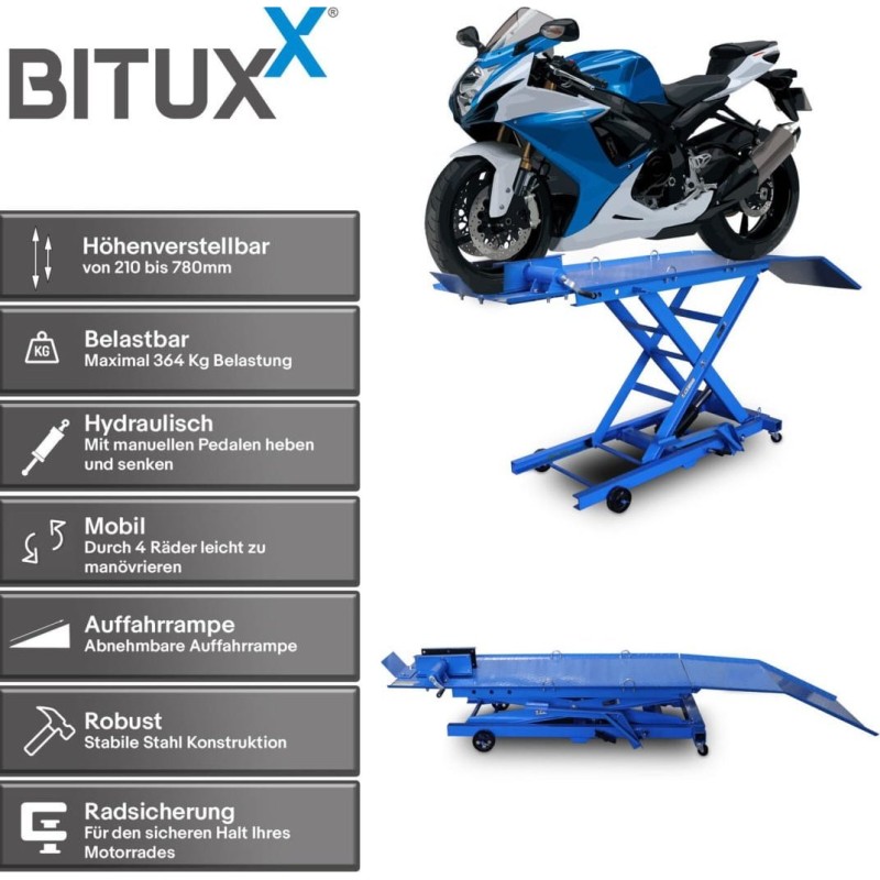 Bituxx Motorrad-Scherenheber – hydraulisch, Tragkraft bis zu 364 kg