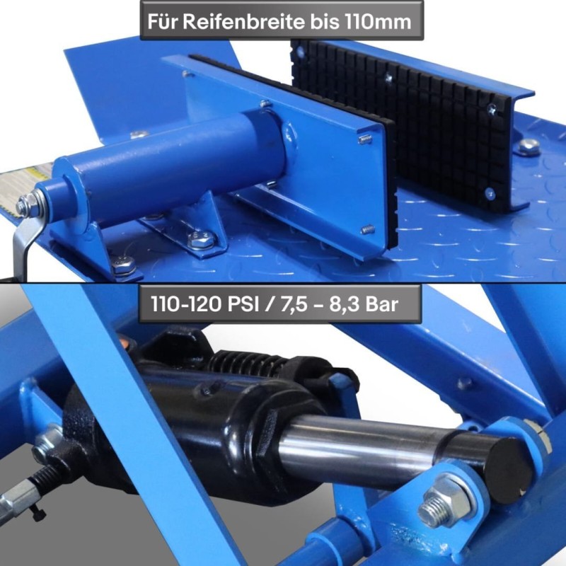 Mit dem hydraulischen Bituxx-Motorrad-Scherenheber werden Wartung, Reparaturen und Pflege Ihres Motorrads zum Kinderspiel. Die robuste Konstruktion ermöglicht sicheres und komfortables Arbeiten, und die maximale Tragkraft beträgt 364 kg. Die Bedienung über ein Fußpedal macht die Nutzung einfach und intuitiv.
