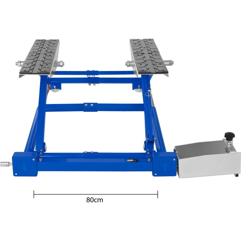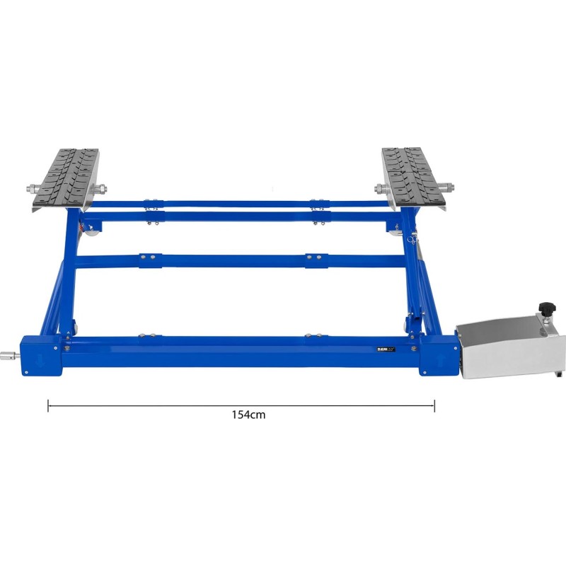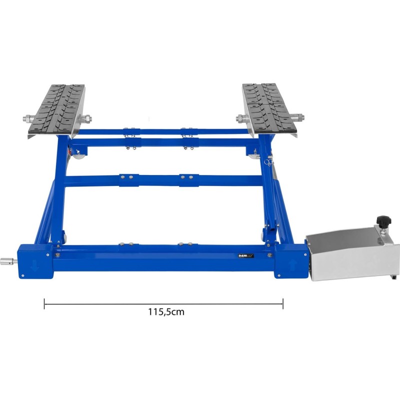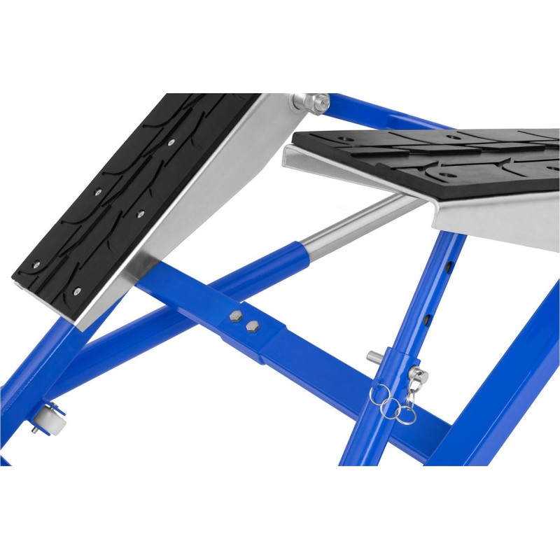 Um den Bedienkomfort zu erhöhen, wurde das Modell MSW-HB-1500 für den Einsatz im Gelände angepasst – es ist extrem leicht, einfach zu montieren und benötigt keine Stromversorgung. Darüber hinaus ermöglicht die Einstellung der Auffahrbreite die Positionierung des Hebers in 3 Positionen (800/1115/1540 mm), was das Anheben verschiedener Fahrzeugtypen erleichtert. Die Hubhöhe des Fahrzeugs ist im Bereich von 150 bis 585 mm einstellbar.