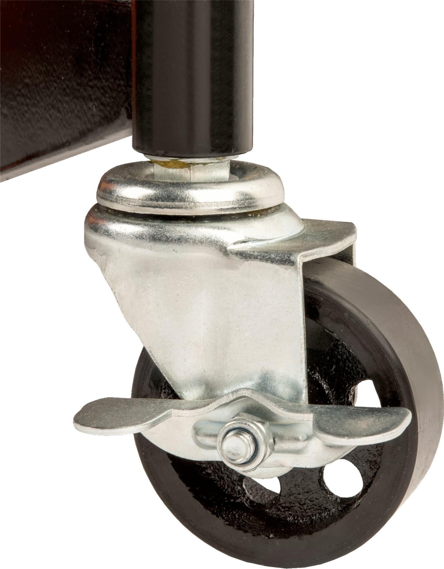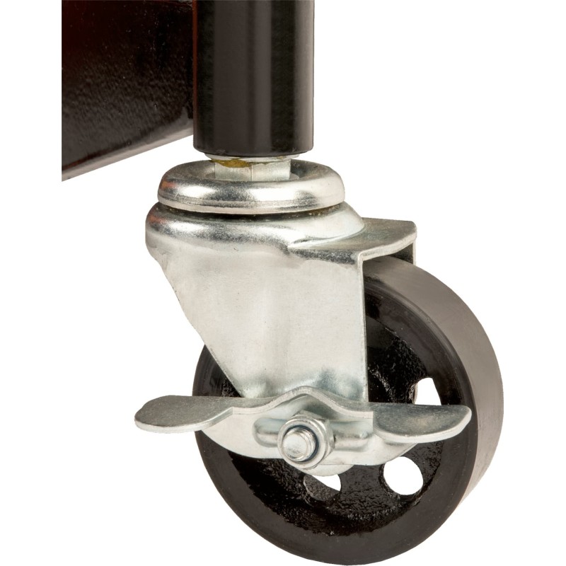 • Robuste, PU-beschichtete Lenkrollen aus Stahl (75 mm) (2 mit Bremse) mit hoher Lebensdauer und optimaler Manövrierfähigkeit