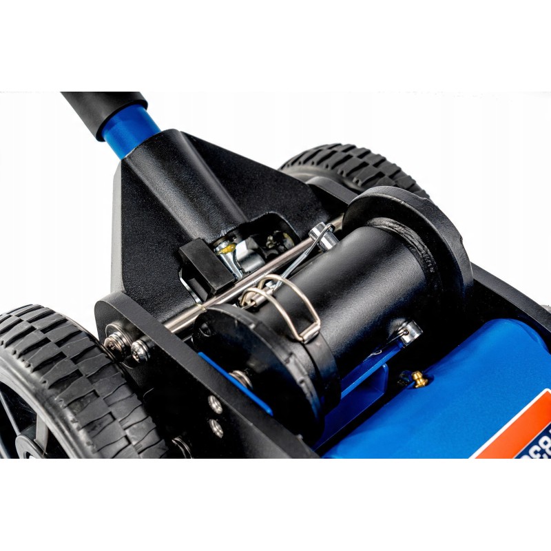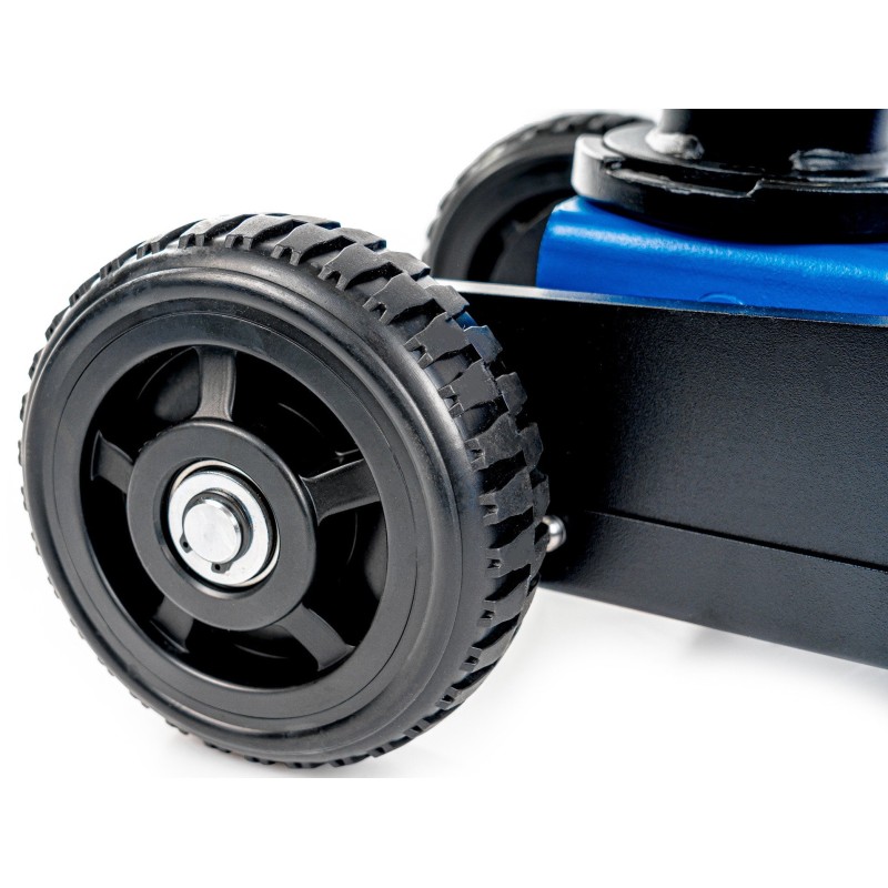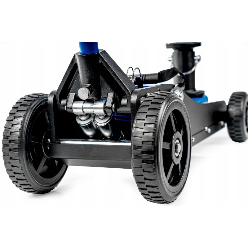 Der Wagenheber ist mit großen Rädern ausgestattet, die ein einfaches Manövrieren in schwierigem Gelände wie Sand, Schlamm oder Kies ermöglichen. Dank ihnen wird die Arbeit mit dem Wagenheber wesentlich einfacher und komfortabler.