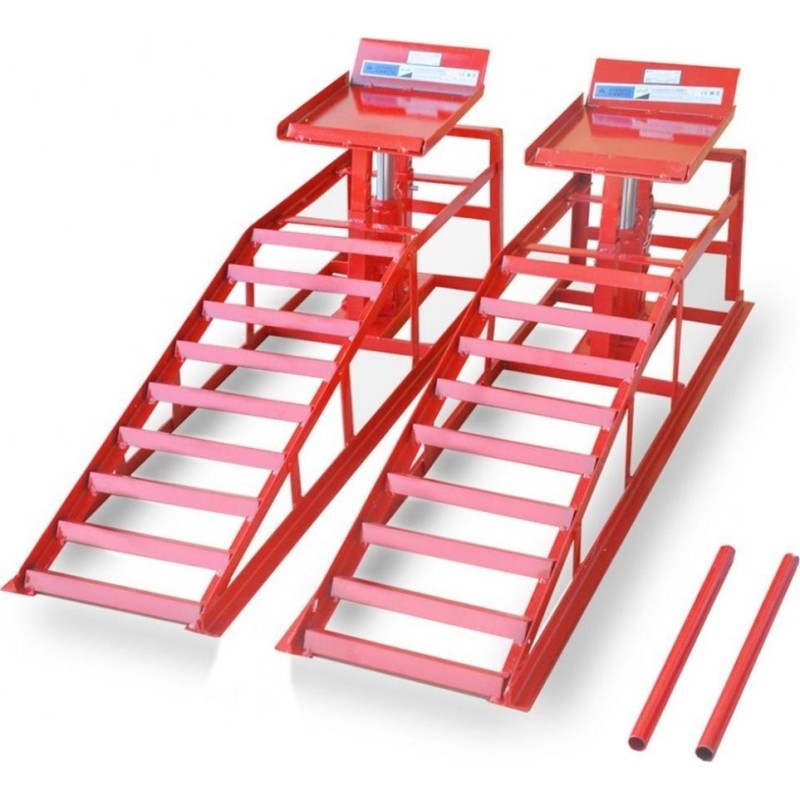 Rampe mit hydraulischer Hebefunktion, geeignet für die Wartung und Reparatur von Fahrzeugen sowohl in Garagen als auch in professionellen Kfz-Werkstätten. Unsere Auffahrrampen verfügen über eine 4-stufige Höhenarretierung. Die Hubhöhen betragen 23 cm, 26 cm, 30 cm und 34 cm. Ideal für Autohändler, Werkstätten und Hobbybastler.