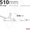 • Hubbereich: 75–510 mm: Die flache Bauweise ermöglicht den Einsatz auch bei Fahrzeugen mit tiefergelegter Federung.