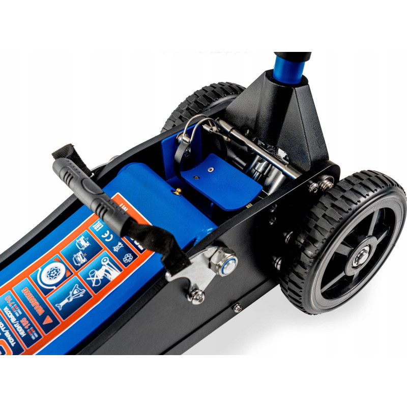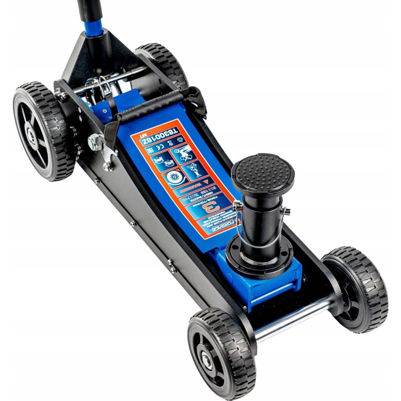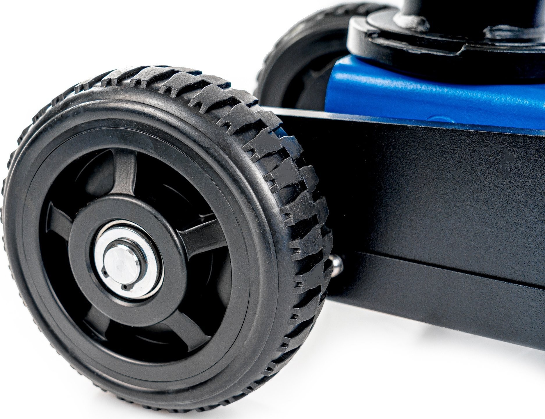 • Große Räder – ermöglichen eine präzise Positionierung des Wagenhebers, unabhängig von der Unterlage