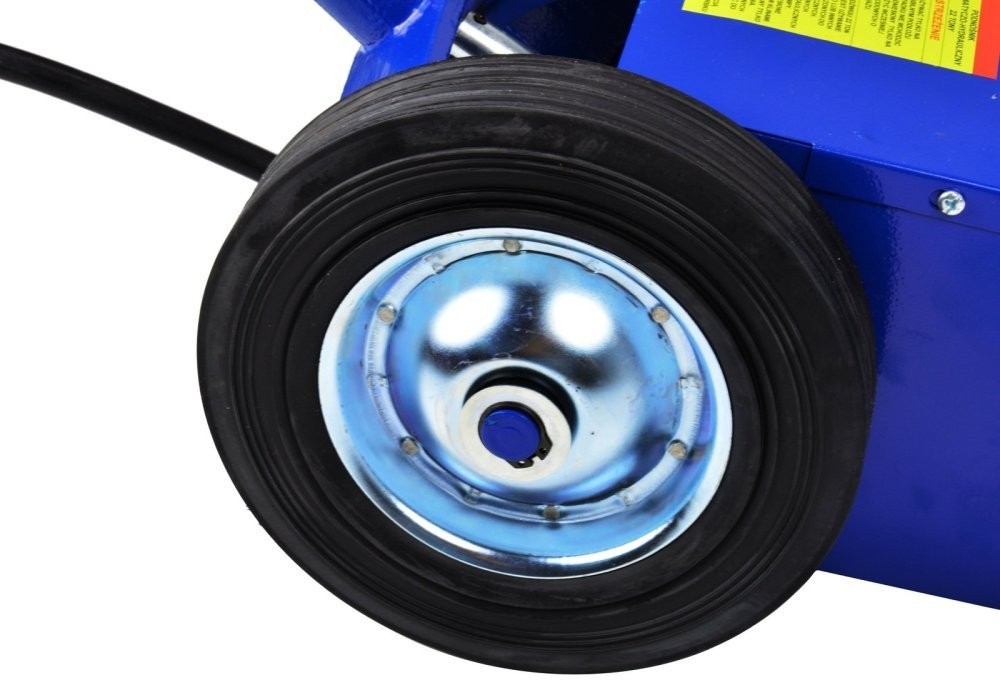 Der Wagenheber ist mit zwei Laufrollen ausgestattet, was seinen Transport erheblich erleichtert. Dank dieser Rollen lässt sich das Gerät schnell und effizient innerhalb der Werkstatt bewegen, was die Arbeitseffizienz steigert und wertvolle Zeit spart.