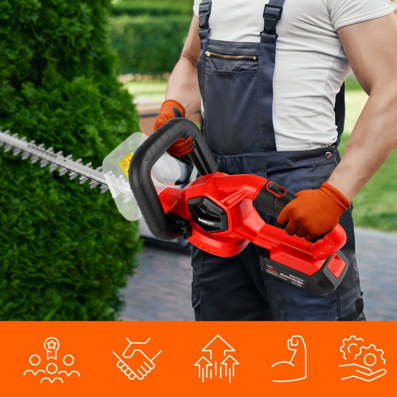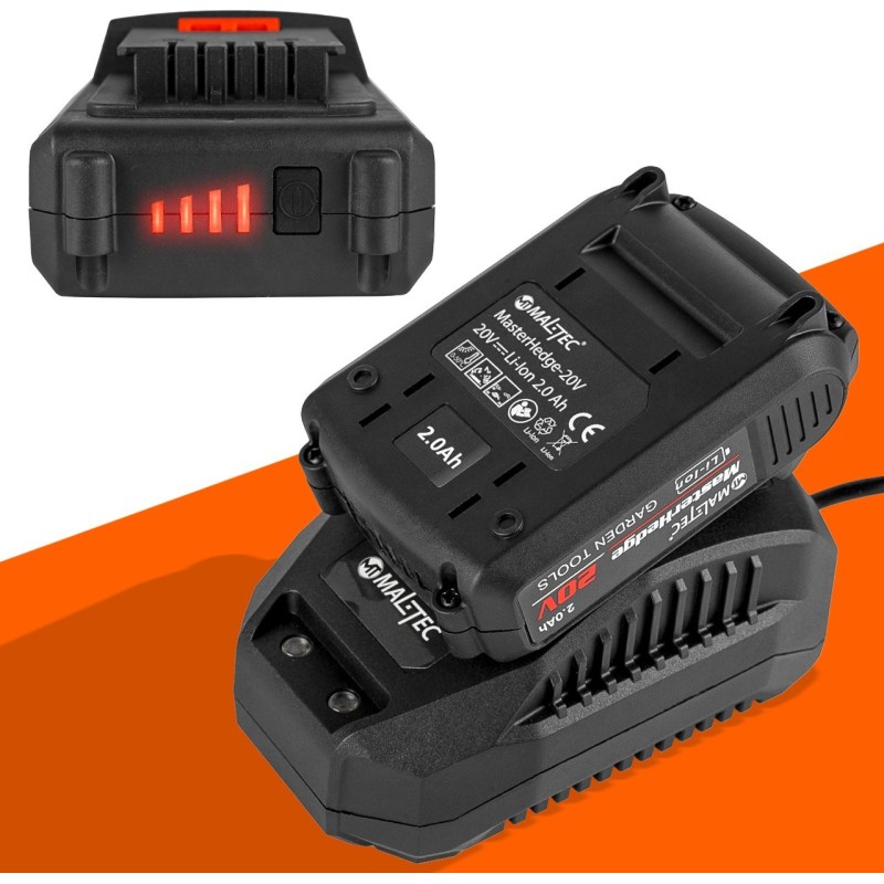 Der Akku MesterHedge-20V ist eine Kombination aus einem 20-V-Akku und einer speziell abgestimmten Konstruktion, die Zuverlässigkeit und langlebige Leistung garantiert. Ohne die Notwendigkeit, Strom zu sparen, wie bei anderen Modellen auf dem Markt, können Sie sicher sein, dass das Gerät auch bei anspruchsvollen Aufgaben seine Leistung bringt und so für Effizienz und professionelle Ergebnisse sorgt.