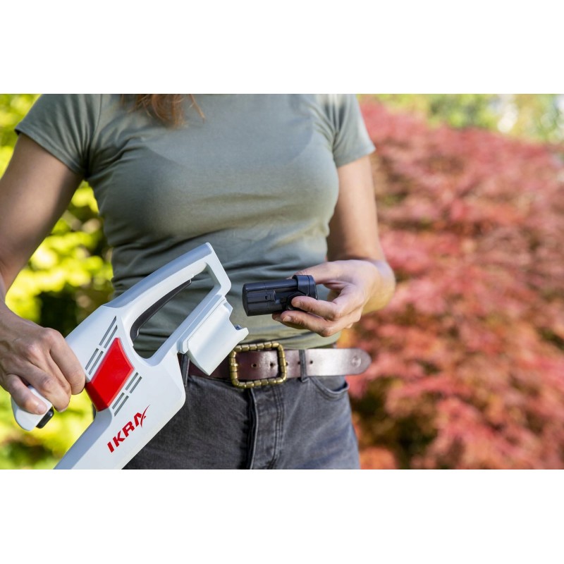 Die Akku-Heckenschere IKRA IAHS1240 ist mit anderen Gartengeräten der Marke IKRA kompatibel, was ihre Vielseitigkeit erhöht. Sie lässt sich mit dem Rasentrimmer IART 1224 und der Teleskop-Heckenschere IATHS 1241 kombinieren, was sie zur idealen Wahl für jeden Gärtner macht.