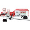 Im Lieferumfang enthalten sind eine Schutzabdeckung für die Schneidleiste sowie ein Schnellladegerät, mit dem der Akku innerhalb von 1 Stunde aufgeladen werden kann (je nach Entladungsgrad).