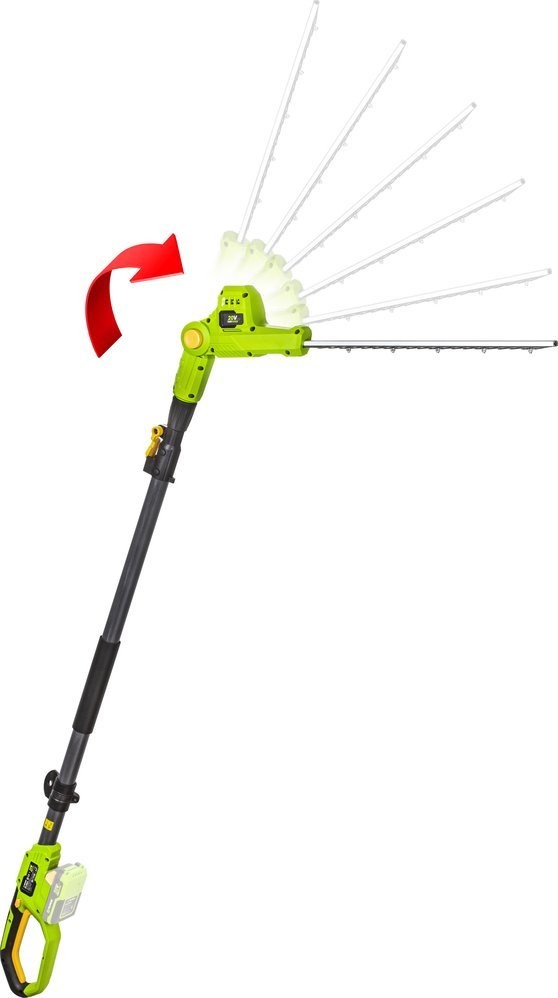 Die Heckenschere mit Ausleger eignet sich zum Schneiden sowohl höherer als auch niedrigerer Hecken vom Boden aus. Dank des Auslegers erreichen Sie auch sehr hohe Zweige und Blätter, die das ästhetische Erscheinungsbild Ihrer Hecke beeinträchtigen. Der ausziehbare Rahmen erhöht den Arbeitskomfort und reduziert den Zeitaufwand für das Heckenschneiden auf ein Minimum.