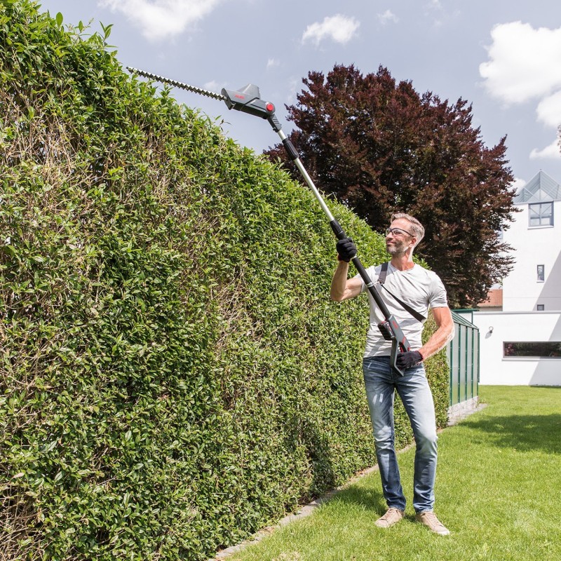 Der Teleskopausleger der AL-KO HTA 1845 ermöglicht das bequeme Beschneiden von Pflanzen in großer Höhe. Mit diesem Werkzeug erreichen Sie mühelos Äste, die zuvor außer Reichweite waren, was die Gartenarbeit erheblich erleichtert.