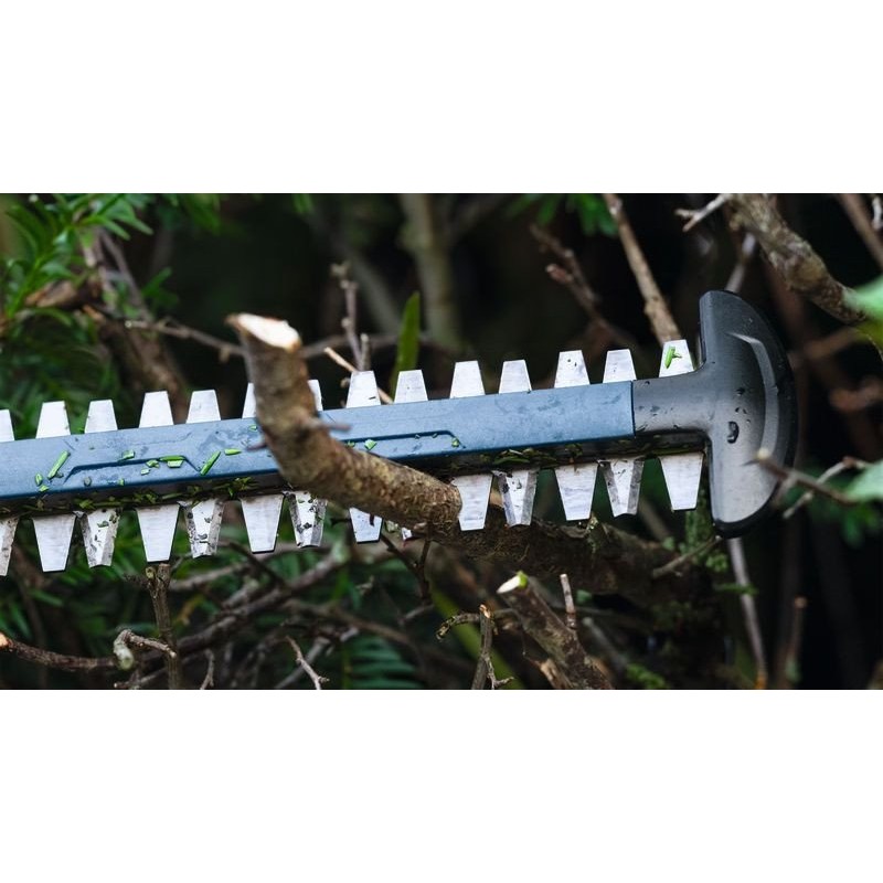 Die Heckenschere wird von einem 18-V-Akku betrieben, was für hohe Leistung und volle Bewegungsfreiheit bei der Arbeit sorgt. Da keine Kabel vorhanden sind, besteht keine Stolpergefahr und Sie erreichen auch schwer zugängliche Stellen im Garten.