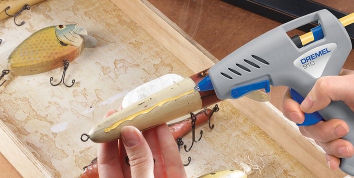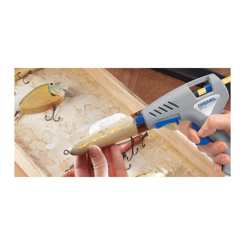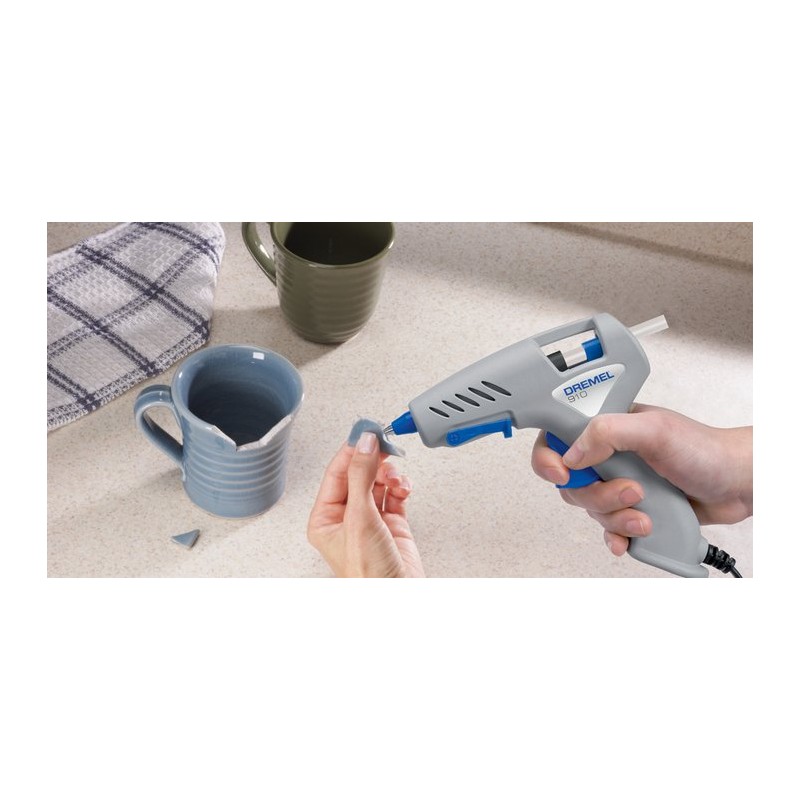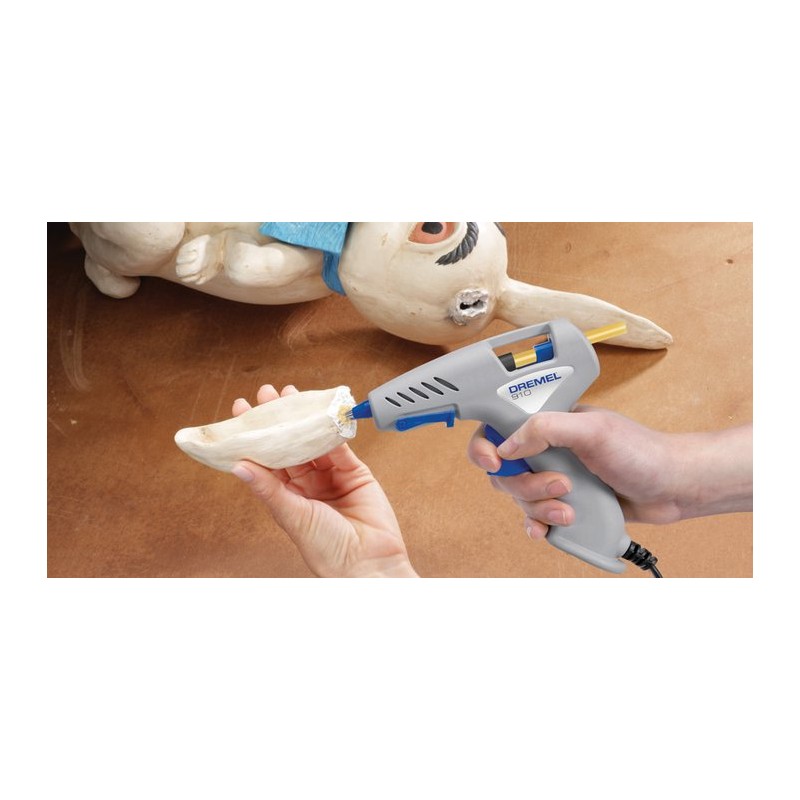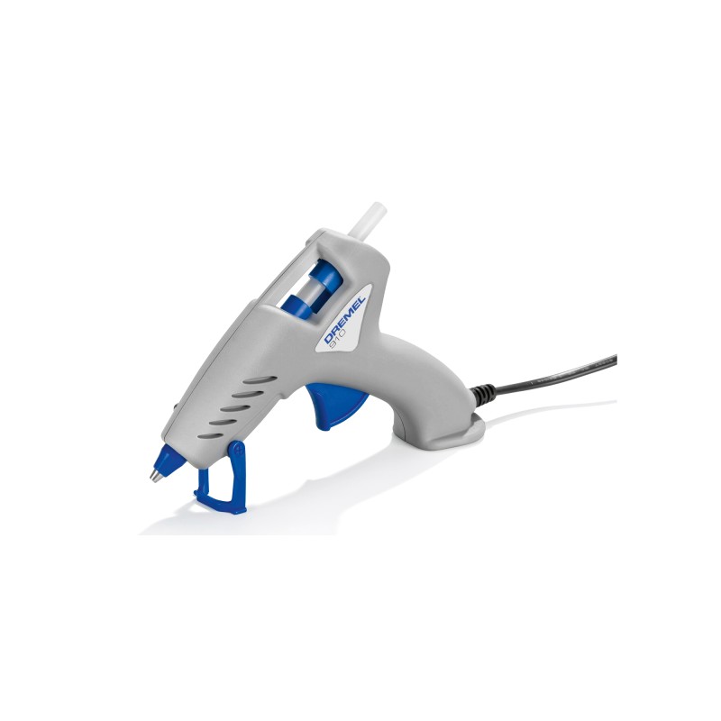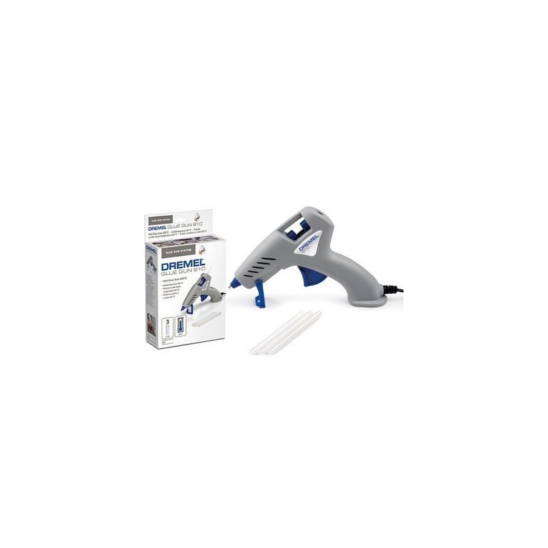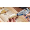 Die Dremel GG 910 ist eine Heißklebepistole für hohe Betriebstemperaturen (165 °C), ausgestattet mit einer präzisen Düse mit Klebstoffauslaufschutz. Dank ihrer kompakten Abmessungen und Ergonomie (T-förmiger Griff, stabile Basis, ausklappbarer Ständer) eignet sich die Pistole ideal für Heimwerker zum schnellen Verkleben von Keramik, Holz, Kunststoff, Glas usw. im Innen- und Außenbereich.