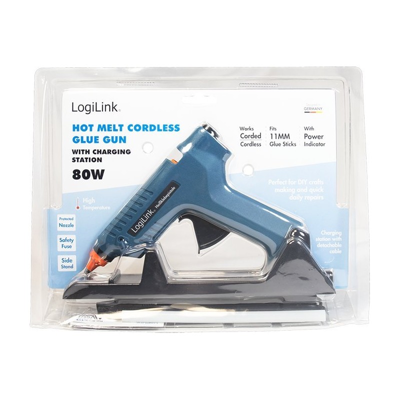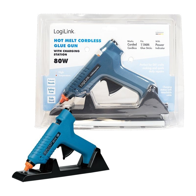 LogiLink Heißklebepistole, 80 W, kabellos, mit Aufsteller, blau