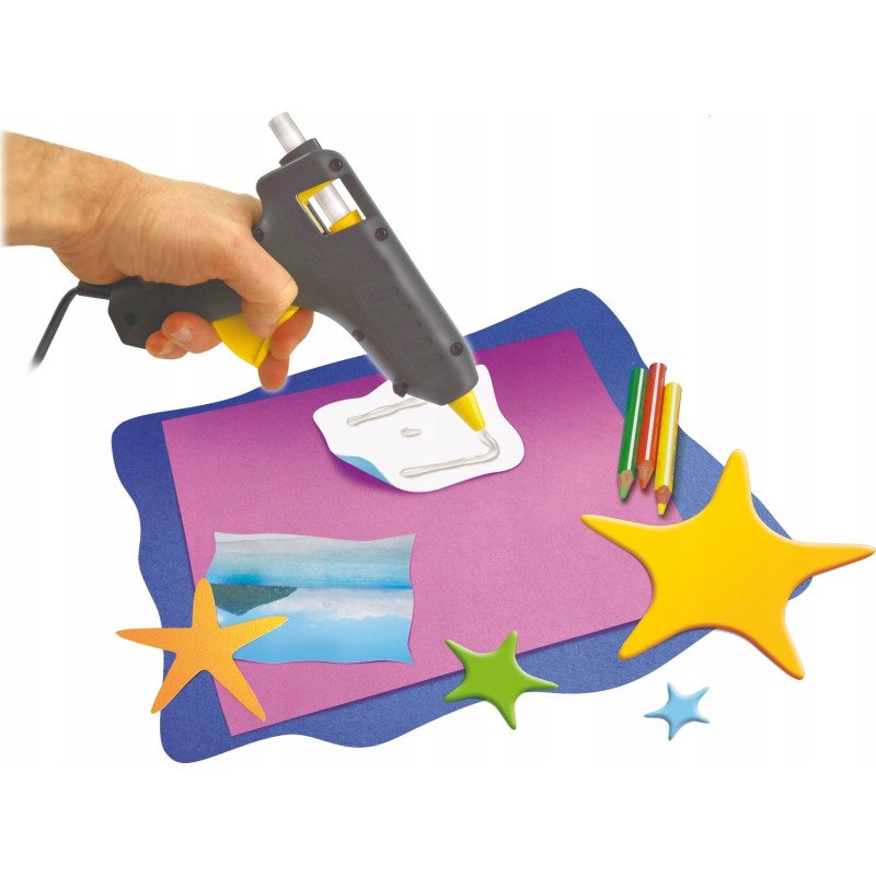 • Der ergonomisch geformte Griff und der breite Handgriff sorgen für eine einfache und saubere Handhabung sowie einen sicheren, rutschfesten Stand. Benötigte Klebesticks: Ø 11 mm – der Kleber trocknet transparent
