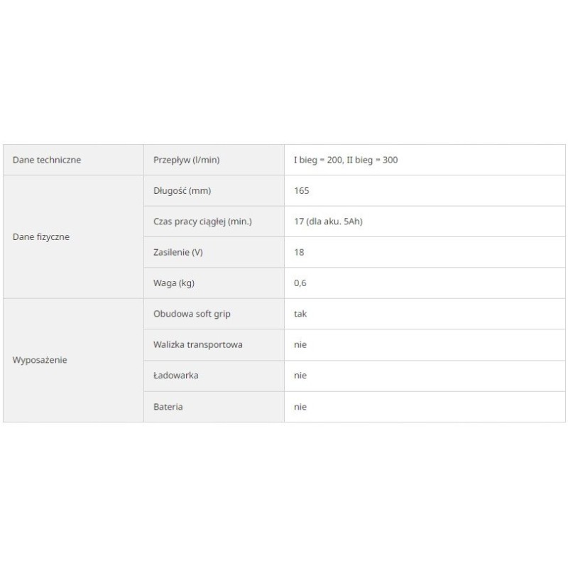 • Dauerbetriebszeit (min.): 17 (bei 5-Ah-Akku)