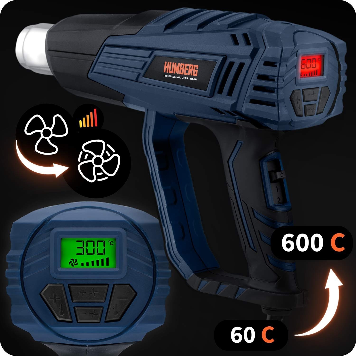 Professionelle elektrische Heißluftpistole HUMBERG 2000 W