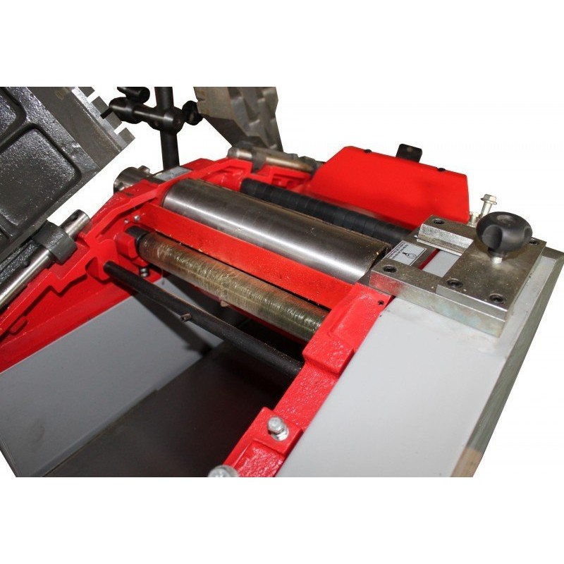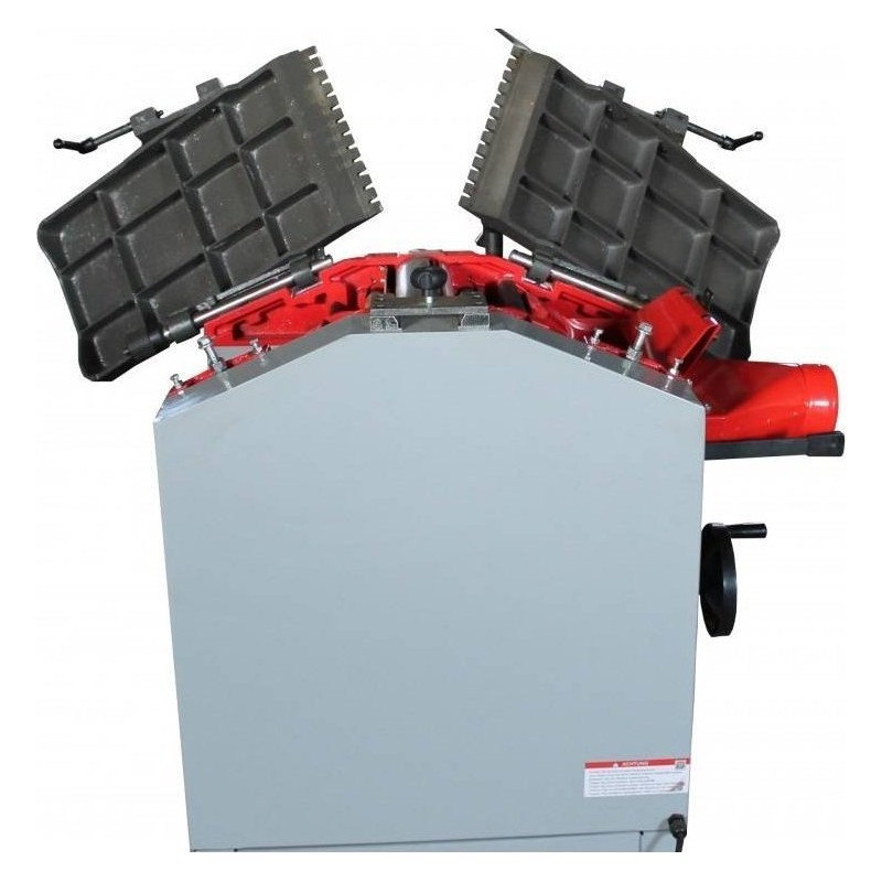 • Seitlich klappbare Tischplatten aus Gusseisen sorgen für komfortables Arbeiten.