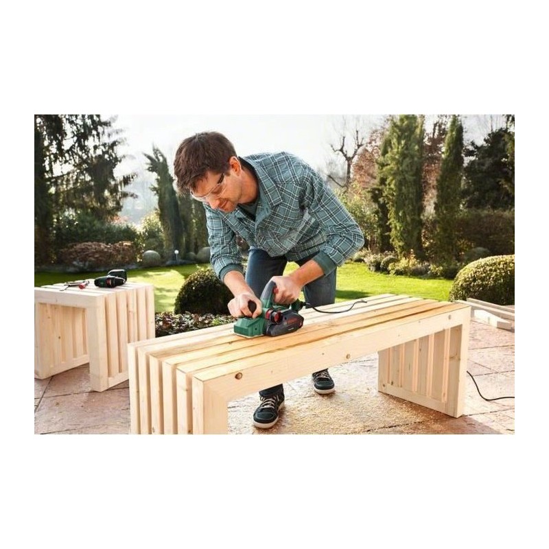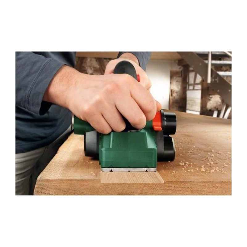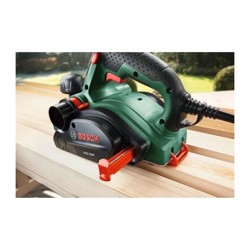 Bosch PHO 2000. Produktfarbe: Schwarz, Grün. Leerlaufdrehzahl: 19.500 U/min, Hobeltiefe (max.): 2 mm, Maximale Hobelbreite: 8,2 cm. Stromversorgung: Wechselstrom, Leistungsaufnahme: 680 W, Wirkleistung: 380 W. Produktgewicht: 2,4 kg