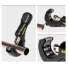 • Stabile Teleskopspindel, langer Spindelführungsweg und 4 speziell gehärtete Andruckrollen sorgen für exakte Führung am Rohr, leichtgängige Verstellung sowie leichte und präzise rechtwinklige Schnitte