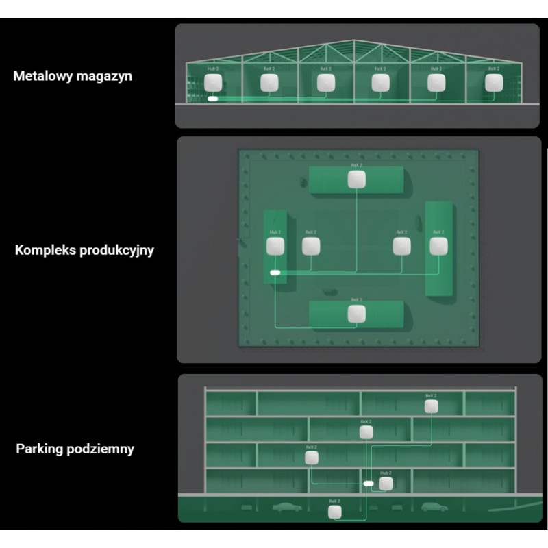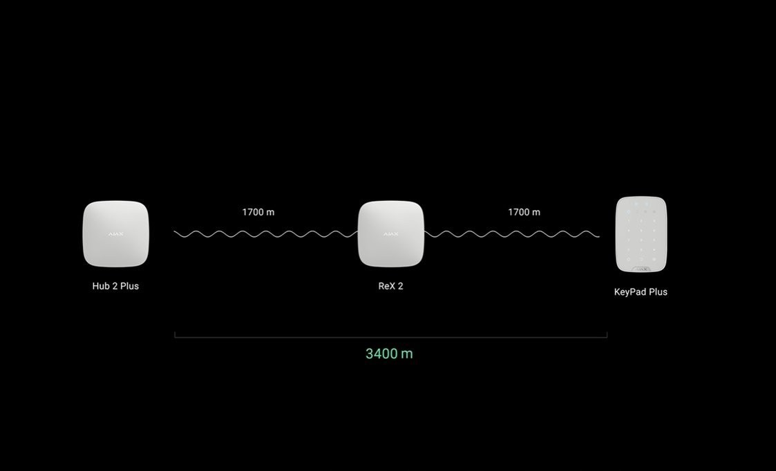 Nach dem Update des Betriebssystems auf OS Malevich 2.13 verbindet sich der ReX 2-Reichweitenverstärker nicht nur über Funk, sondern auch über Ethernet mit dem Hub und nutzt dabei das Kabel als einzigen oder zusätzlichen Kommunikationskanal. Ein einziges Ajax-System kann Objekte wie ein Bürozentrum mit Tiefgarage, einen Metall-Segmenthangar oder einen aus mehreren großen Gebäuden bestehenden Lagerkomplex abdecken.