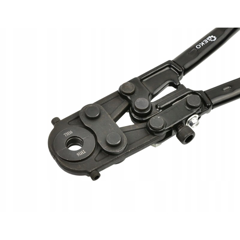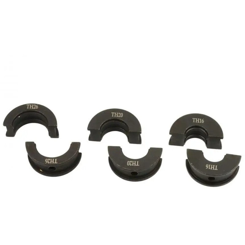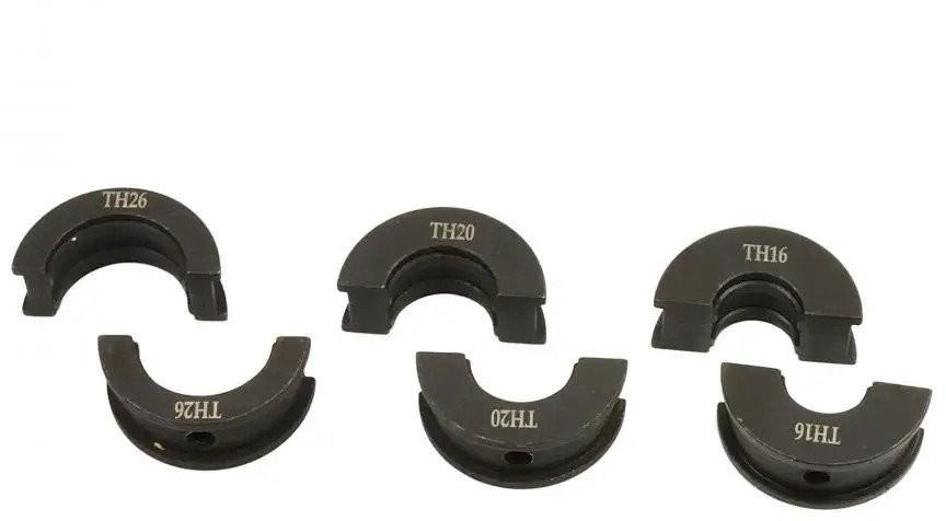 Im Lieferumfang sind austauschbare TH-Matrizen in den Größen 16 mm, 20 mm und 26 mm enthalten, was die Vielseitigkeit des Werkzeugs erhöht. Dadurch eignet sich die Presszange hervorragend für verschiedene Anwendungen und passt sich Ihren Bedürfnissen an.