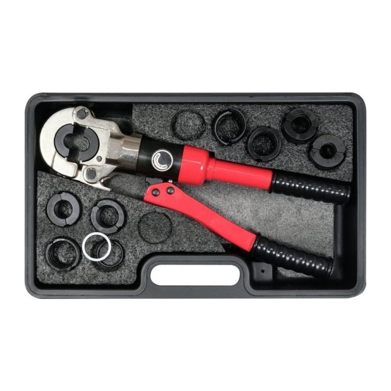 • Lieferumfang: Presswerkzeug, Ersatzmatrizen Typ U x4 (16 mm, 20 mm, 25 mm, 32 mm), Ersatzmatrizen Typ TH x4 (16 mm, 20 mm, 26 mm, 32 mm)