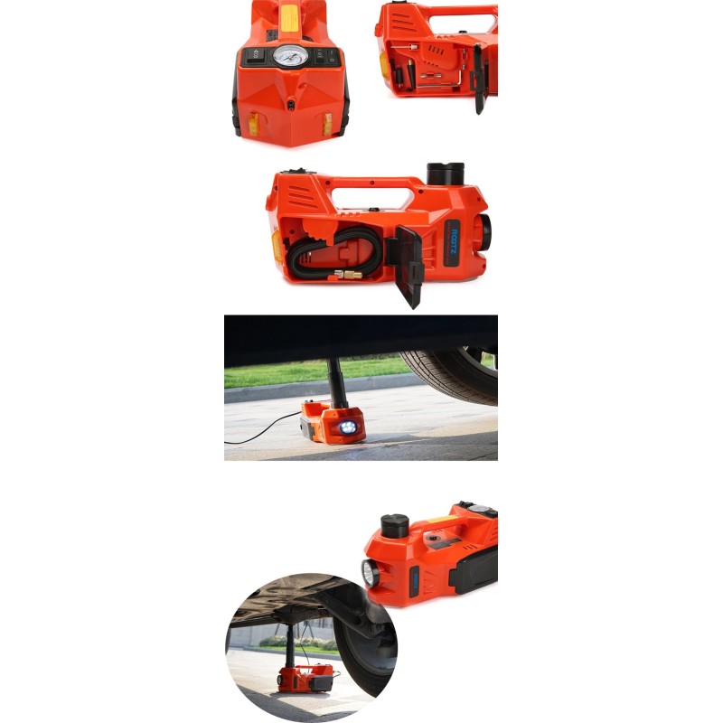 Der Wagenheber kann an den Zigarettenanzünder oder direkt an die Batterie angeschlossen werden, wodurch das Fahrzeug schnell angehoben wird. Je nach Bedarf kann das Auto um 13,5 bis 36 cm angehoben werden.
