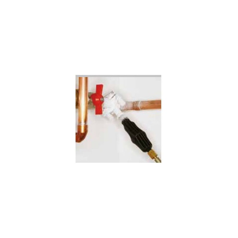 Ergonomisch geformter Kunststoffgriff für angenehmes Arbeiten. Bruchsicherer Injektor (Düse) aus Messing. Schneller und sicherer Anschluss an die Gefrierbänder. Keine Einstellung erforderlich, es wird immer die richtige Menge an Gefriermittel zugeführt.