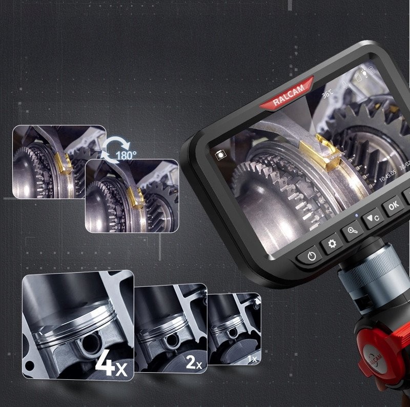Das Ralcam H406BD-MAX ist ein modernes Boroskop, das innovative Technologien und Funktionalität vereint und Anwendern einzigartige Inspektionsmöglichkeiten unter schwierigen Bedingungen bietet. Dank der Doppellinse ermöglicht das Gerät die gleichzeitige Beobachtung von vorne und von der Seite, was die Effizienz der Diagnose erheblich steigert.