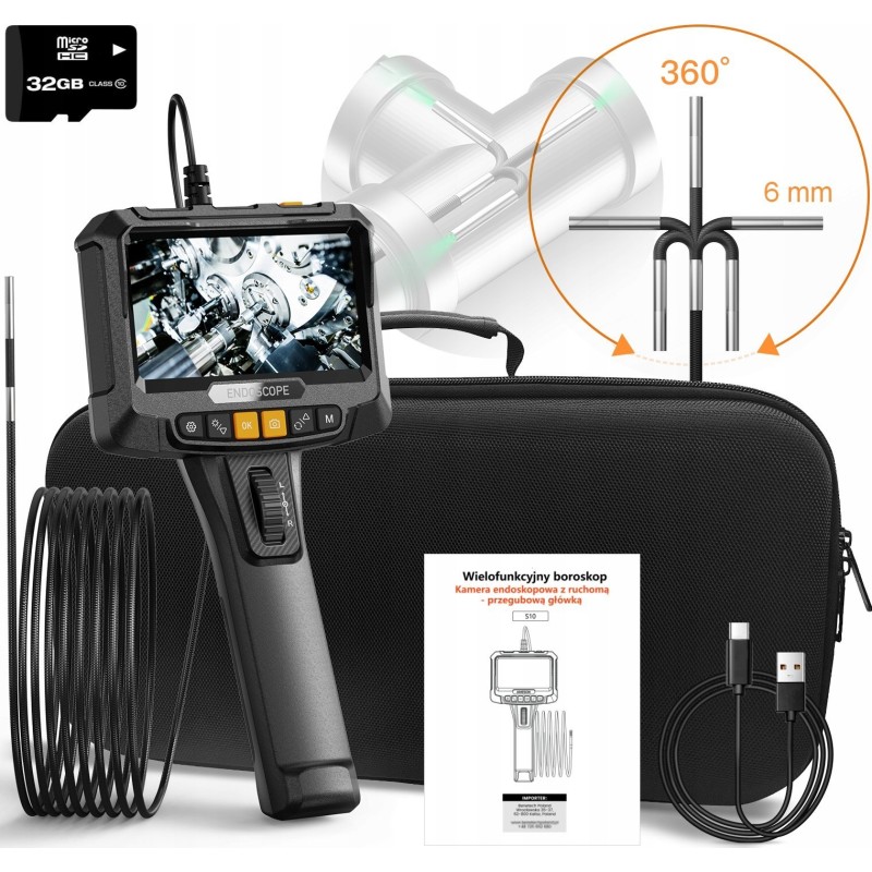 360°-Dreh-Inspektionsendoskop mit LED-Beleuchtung, SD-Bildschirm (32 GB), IP67, 2 m Kabel, S10-Kamera (6 mm) – Ein modernes Inspektionswerkzeug