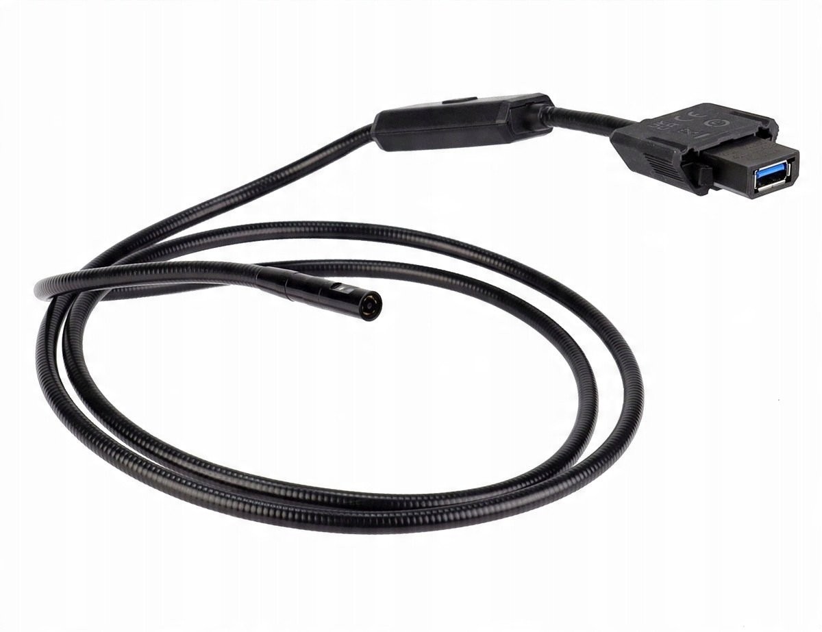 Das 150 cm lange Kabel sorgt für hohe Flexibilität bei der Inspektion und ermöglicht es, Stellen zu erreichen, die mit herkömmlichen Werkzeugen nicht zugänglich sind. Der minimale Biegeradius von 25 mm macht das Kabel leicht manövrierbar.