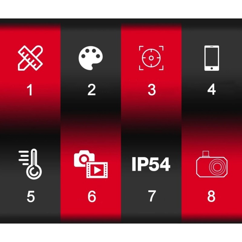 Die Wärmebildkamera bietet eine Auflösung von 256x192, was klare und detailreiche thermografische Bilder ermöglicht. Ihre Temperaturmessgenauigkeit beträgt ±2 °C oder ±2 % des Messwerts, was Zuverlässigkeit bei professionellen Anwendungen gewährleistet.