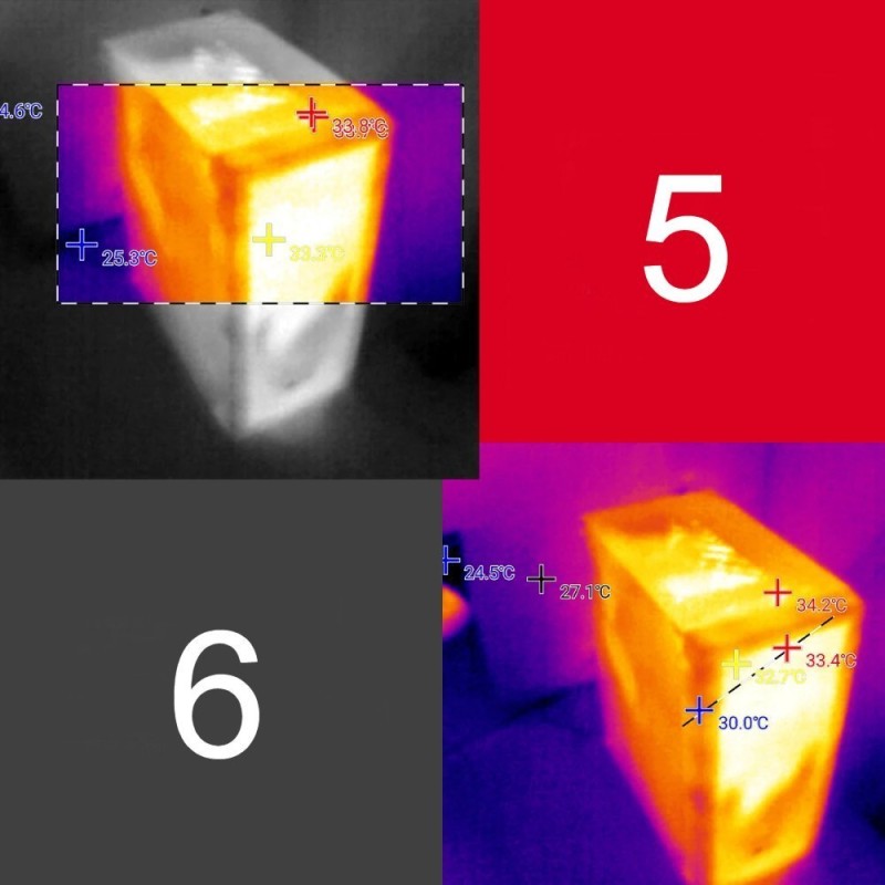 Benutzer können verschiedene Bildmodi nutzen, wie z. B. Eisenrot, Weiß-Heiß, Schwarz-Heiß, Regenbogen, Rot-Heiß und Kalt-Blau, wodurch das Bild an die individuellen Analyseanforderungen angepasst werden kann.