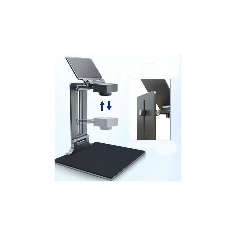 Das Gerät verfügt über eine einstellbare Objektivhöhe, wodurch der Blickwinkel an die individuellen Bedürfnisse des Benutzers angepasst werden kann, was eine genaue Analyse und Inspektion erleichtert.