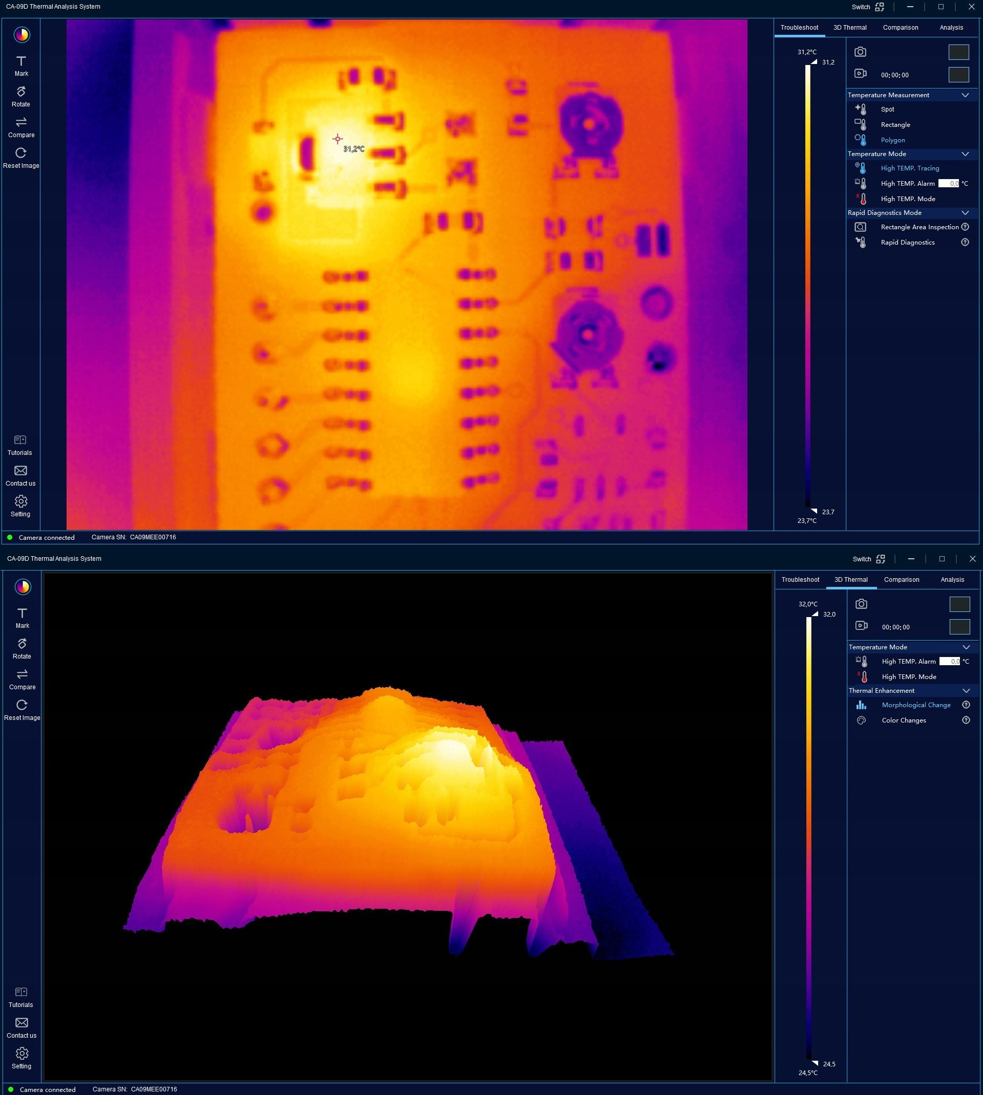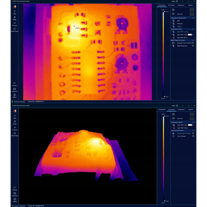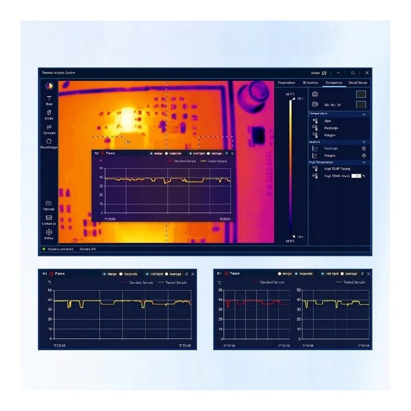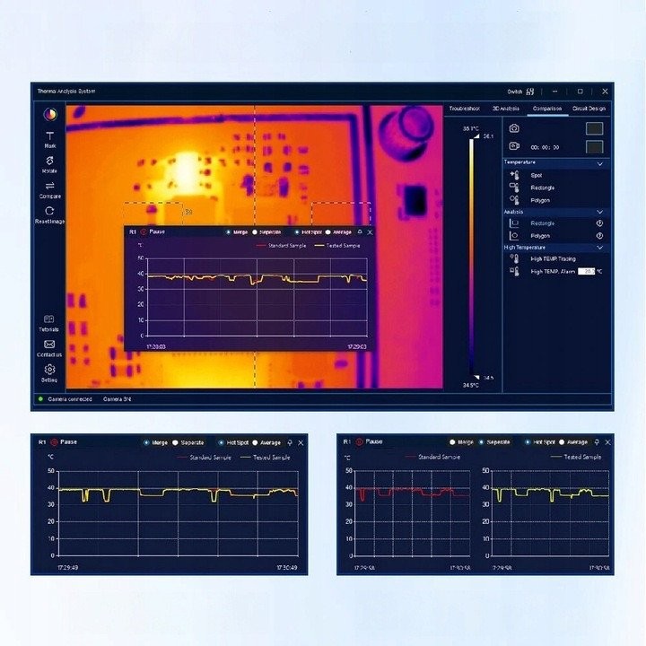 Die PCBA-Wärmebildkamera ist äußerst einfach zu bedienen, sodass sich ihre Funktionen schnell erlernen lassen. Dank verschiedener Analysemodi können Anwender Fehler blitzschnell und effizient lokalisieren sowie detaillierte Datenvergleiche durchführen.