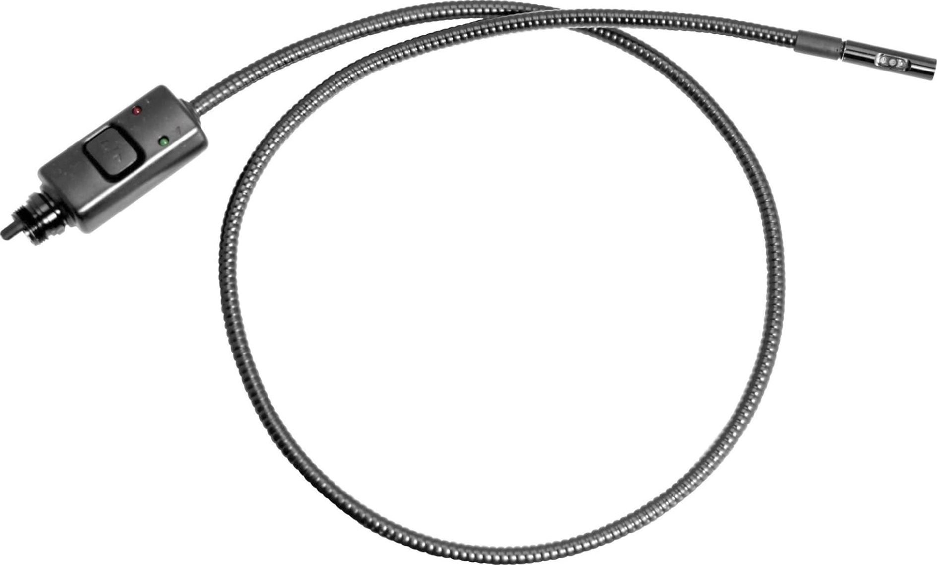 Fester Kamerakopf mit zwei Kameras, eine vorne und eine seitlich (90°). Die Kameras sind umschaltbar. Der Kamerakopf und das Kabel sind wasserdicht nach IP 67 (außer Stecker und Schalter). Der Kamerakopf hat eine Größe von 9 mm. Er passt zu folgenden Kameras der Marke Limit: 17427-0108, 19011-0106 und 19012-0105.