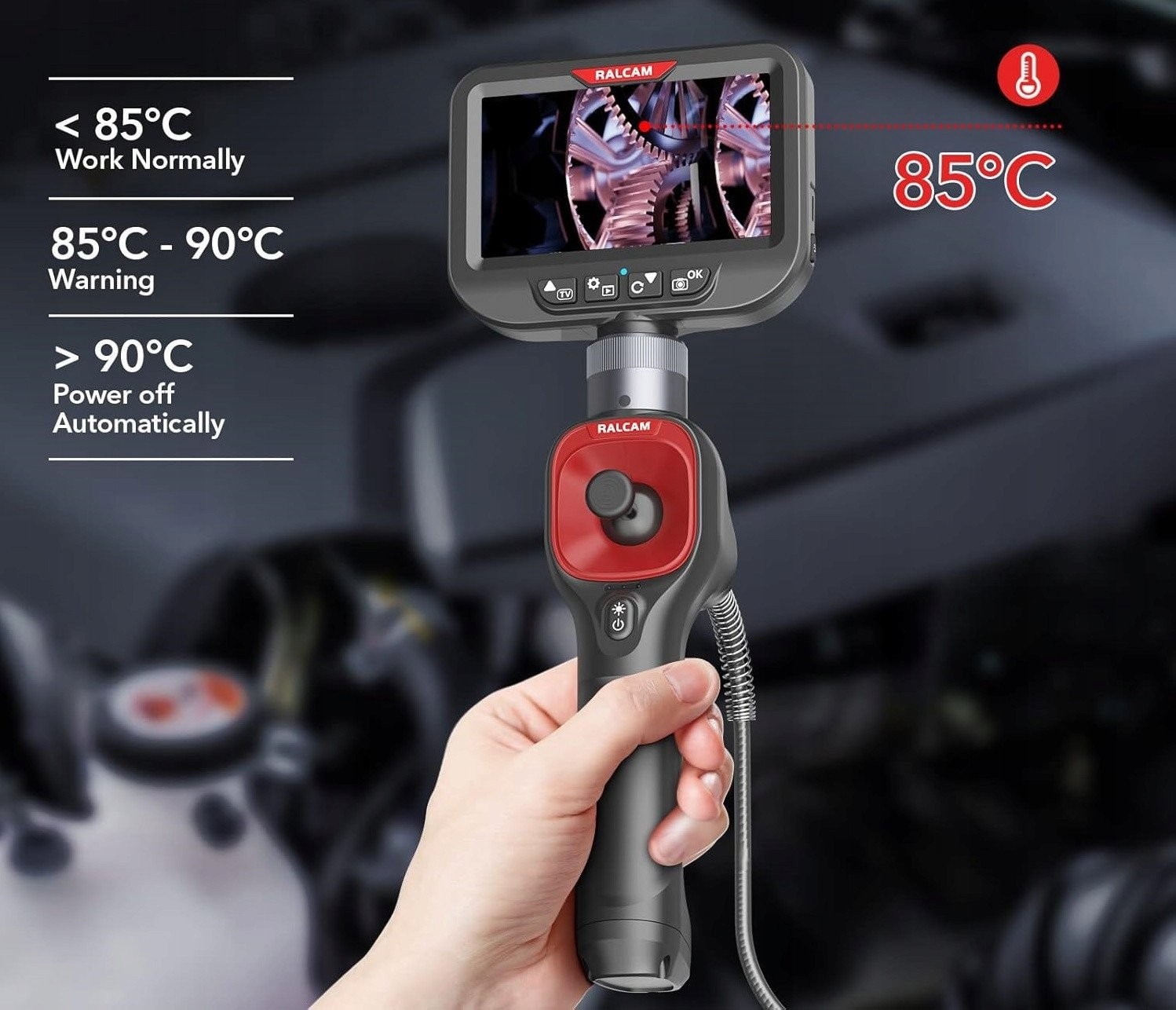 Die Kamera ist mit einem 4,3-Zoll-Display mit HD-Auflösung (720p) ausgestattet, das ein klares Echtzeitbild liefert. So kann der Benutzer die untersuchten Bereiche genau beobachten und die richtigen Entscheidungen treffen.