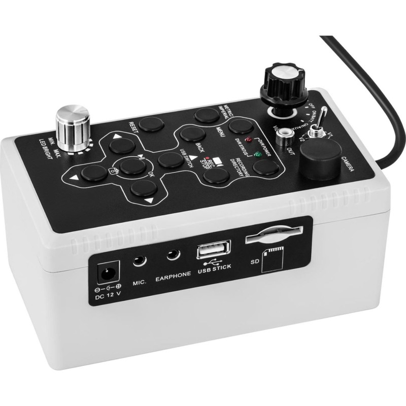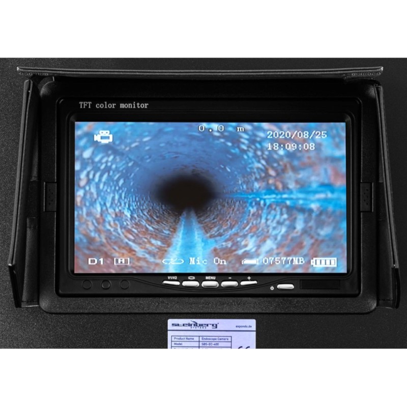 Herstellercode: 10030556Die Endoskopkamera von Steinberg Systems eignet sich zur Überprüfung des Zustands von Abflüssen, Rohren, Lüftungsanlagen und vielem mehr. Das Endoskop bewährt sich zudem im Bauwesen, in der industriellen Bohrtechnik und sogar bei archäologischen Untersuchungen. Die große Reichweite ist dem 50 m langen Kabel zu verdanken. Eine praktische Spule ermöglicht es, die Sonde aufzurollen und sicher zu verstauen. Zwei Führungssterne (40, 80 mm) passen die Kamera an den Rohrdurchmesser an. Der Kamerakopf ist mit 12 LEDs ausgestattet, die dunkle Ecken ausleuchten. Das Bild kann bis zu 8-fach vergrößert werden. Dies ermöglicht sehr scharfe Videos und Fotos. Der farbige TFT-LCD-Bildschirm dient zur Live-Vorschau. Die Diagonale von 7 Zoll und der Anzeigemodus im Format 16:9 oder 4:3 sorgen für eine gute Bildqualität. Außerdem können Sie auf dem Monitor die auf der SD-Karte gespeicherten Videos und Fotos ansehen.Produktmerkmale:- Reichweite – 50 m langes Kabel.- Sichtbarkeit – Kamera mit 12 LEDs, - Praktikabilität – Möglichkeit, Fotos und Videos mit Ton auf einer SD-Karte aufzunehmen, - Ergonomie – 7-Zoll-TFT-LCD-Farbbildschirm, - Mobilität – praktischer Transportkoffer. Technische Daten: - Modell – SBS-EC-500- Artikelnummer – 10030556- Artikelzustand – Neu- Stromversorgung – 100–240 V, 50/60 Hz, 1,5 A- Akku – Integrierter Lithium-Ionen-Akku, 4400 mAh / 12,6 V- Gehäusematerial – Aluminium- Display - LCD- Displaytyp - 7"-TFT-Farbbildschirm - Bildauflösung - 1/4"- Kopfabmessungen - 23 x 120 mm- Schwenkbereich des Kopfes - 90- Länge des Sondenauslegers - 50000 mm (Ø 5 mm) – Blickwinkel – 105° – Speicher – SD-Karte 8 GB (max. 256 GB) – USB-Anschluss – Ja – LED-Lampe – Ja – Anzahl der LEDs – 12 Stück – Automatische Abschaltung – Nein – Schutzklasse – IP68 – Bedienungsanleitung – Ja – Abmessungen (LxBxH) – 47,50 x 18,50 x 40 cm – Gewicht – 7,95 kg – Versandmaße (LxBxH) – 50 x 20 x 42,50 cm – Versandgewicht – 8,80 kg Im Lieferumfang enthalten: – 7"-Bildschirm,- Koffer, - Verbindungskabel, - Kabeltrommel, - Kabel, - Kamerakopf 23 mm, - 2 Führungssterne (40, 80 mm), - Akku, - Ladegerät, - SD-Karte 8 GB, - USB-Stick, - Mikrofon, - Schraubendreher, - Fernbedienung - Bedienungsanleitung....