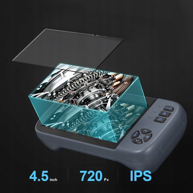 Die Inspektionskamera Endoskop Duo ist ein modernes Gerät, das eine bequeme Betrachtung schwer zugänglicher Stellen ermöglicht. Dank des flexiblen, 10 Meter langen Kabels und des Doppellinsenobjektivs ist sie die perfekte Lösung für Inspektionen unter verschiedenen Bedingungen. Der große 4,5-Zoll-IPS-Bildschirm sorgt für komfortables Betrachten und Aufzeichnen von Bildern in hoher Auflösung (1920x1080).