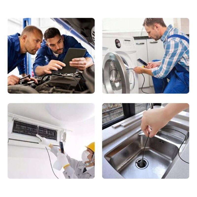 Die Inspektionskamera Endoskop Duo findet in vielen Bereichen Anwendung, wie beispielsweise in der Industrie, der Mechanik, der Kfz-Reparatur sowie in der Luftfahrt. Sie eignet sich hervorragend für die Inspektion von Rohrinnenräumen, Lüftungskanälen und schwer zugänglichen Ecken, was sie in jeder Situation zu einem unersetzlichen Werkzeug macht.